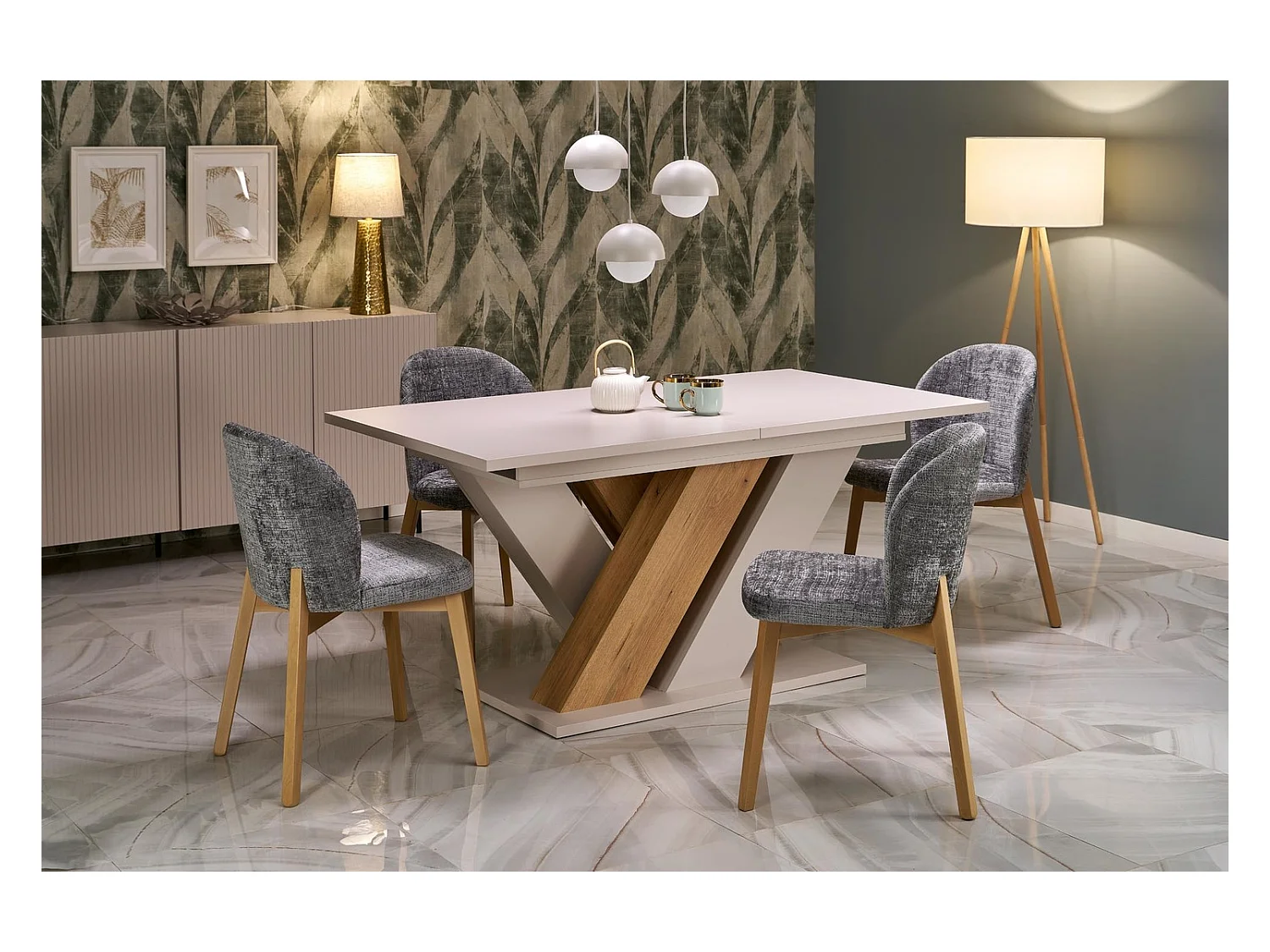 Esstisch XARELTO (85x135-175)/Ausziehbar/Braun&Grau