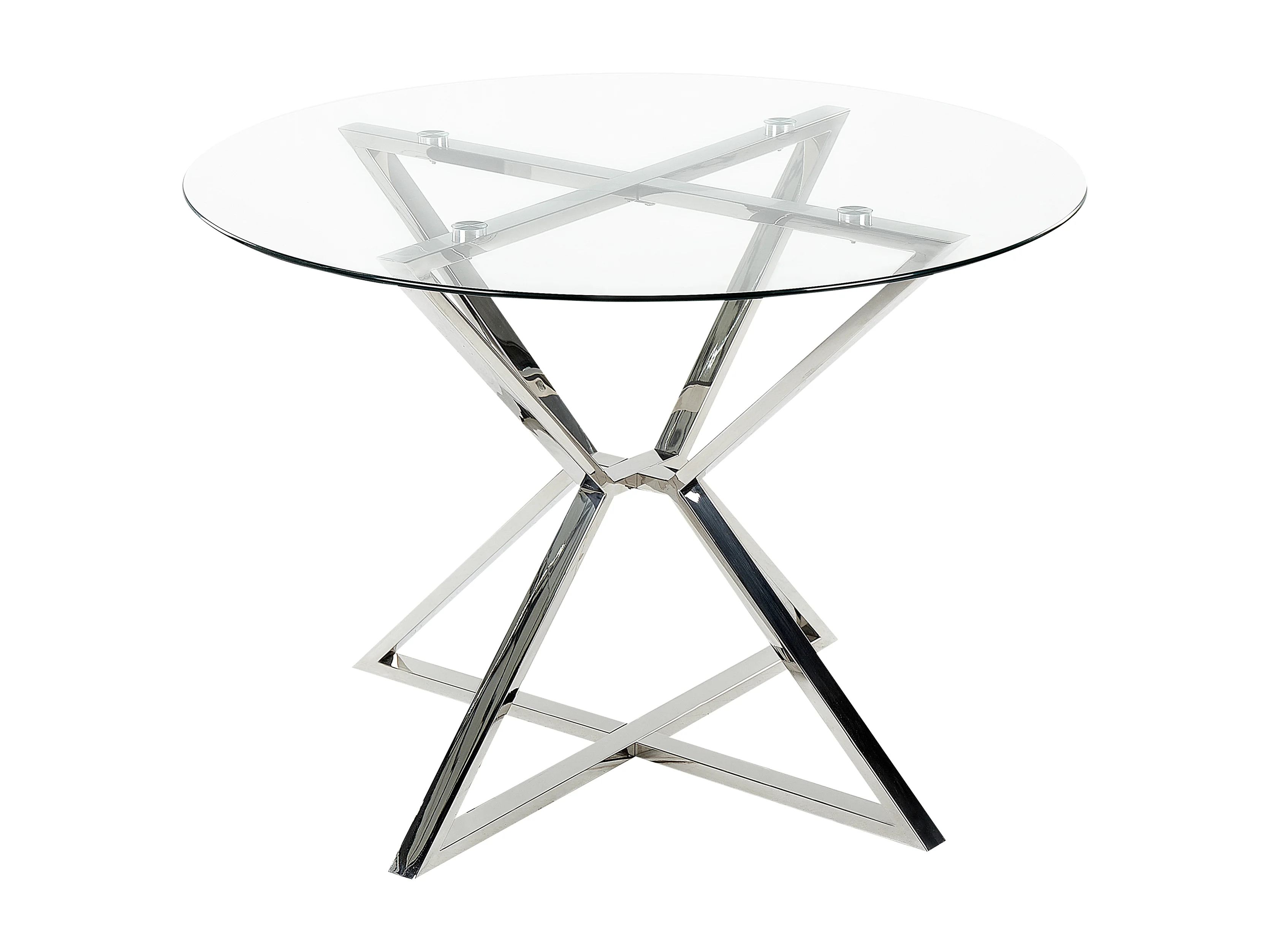Esstisch glamourös aus temperiertem Glas, silberfarben ⌀ 105 cm Metallbeine Bosco
