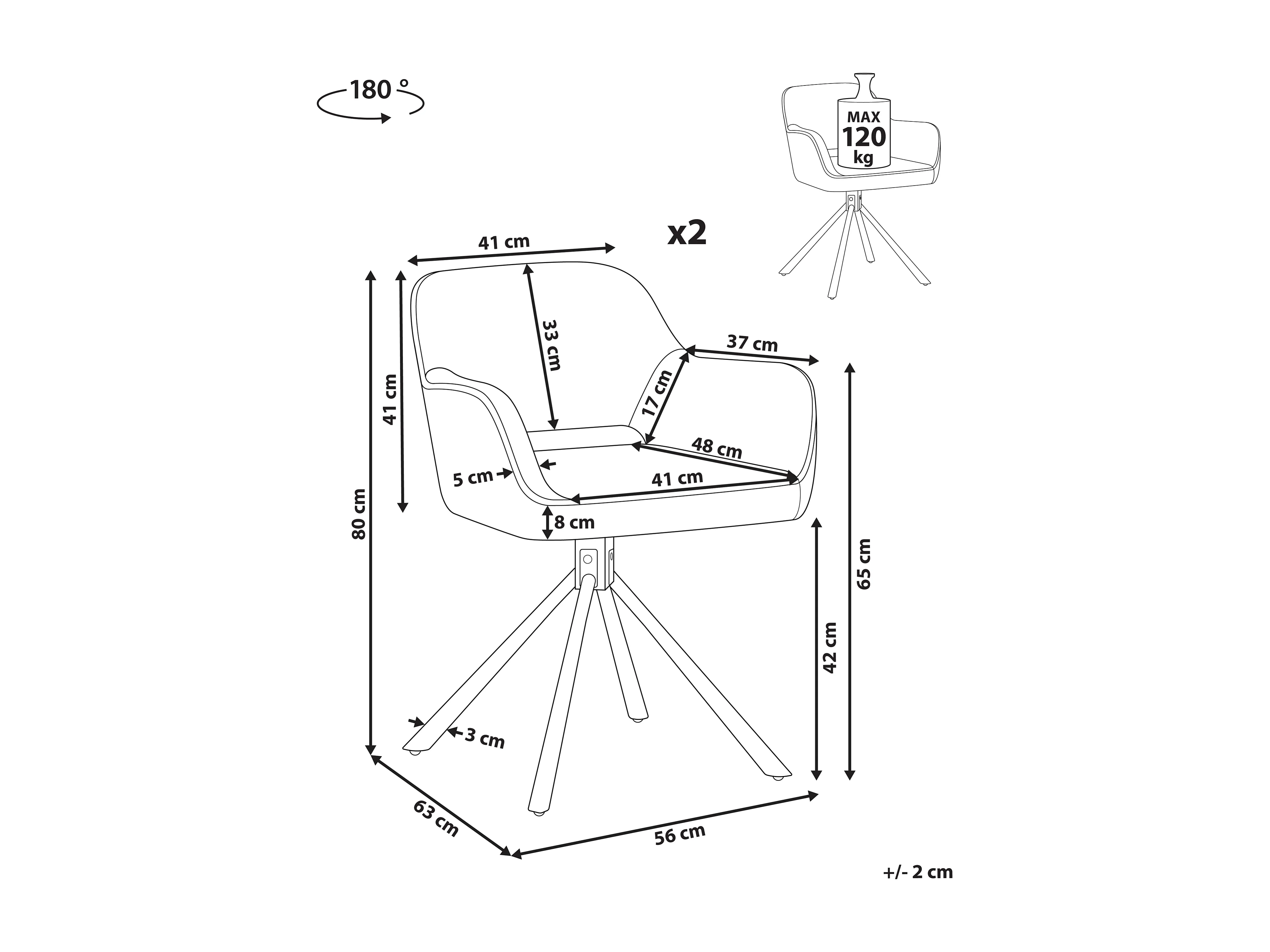 Esszimmerstuhl 2er Set drehbar Stoffbezug grün mit Armlehnen Metallbeine Avelar