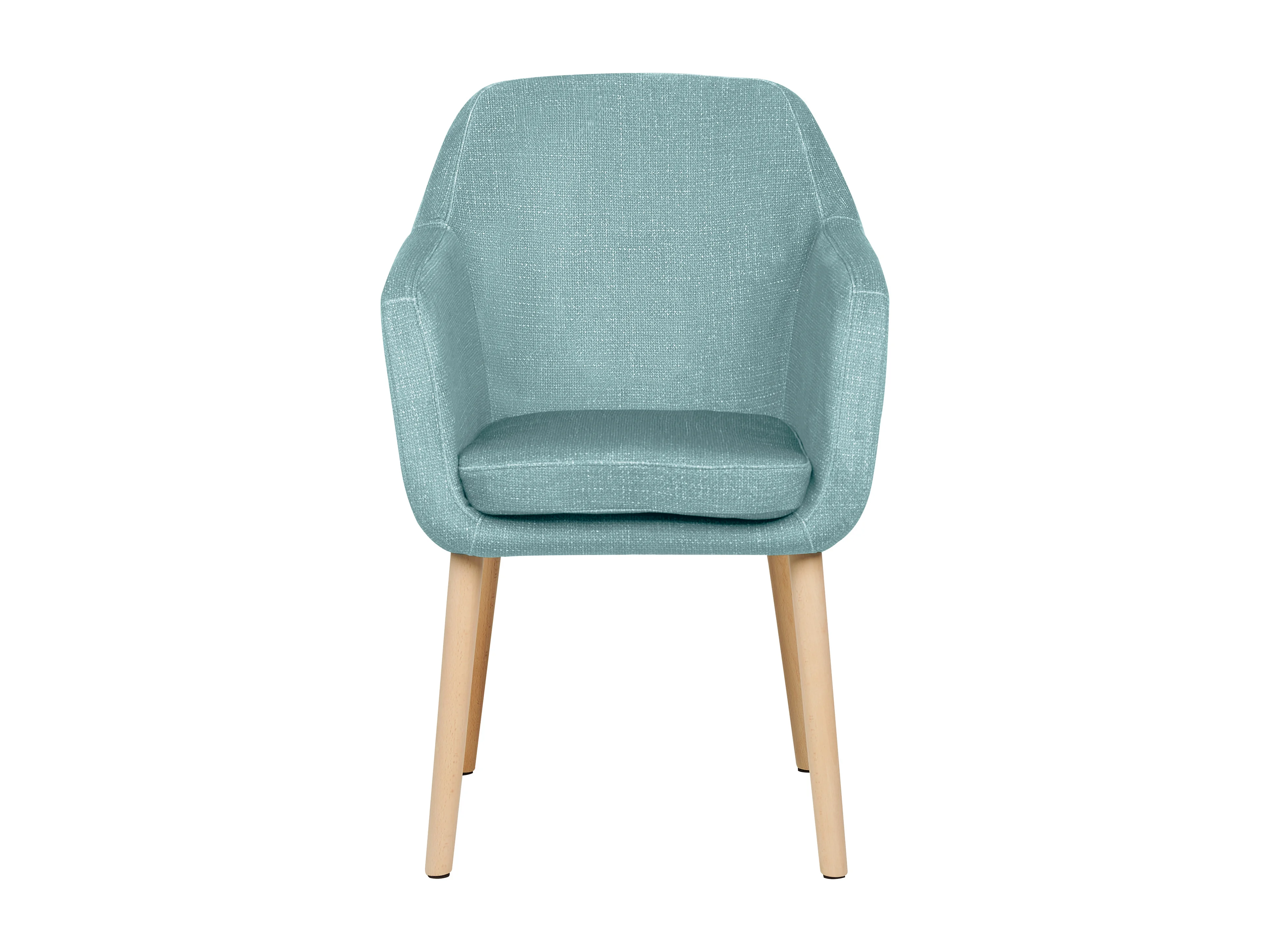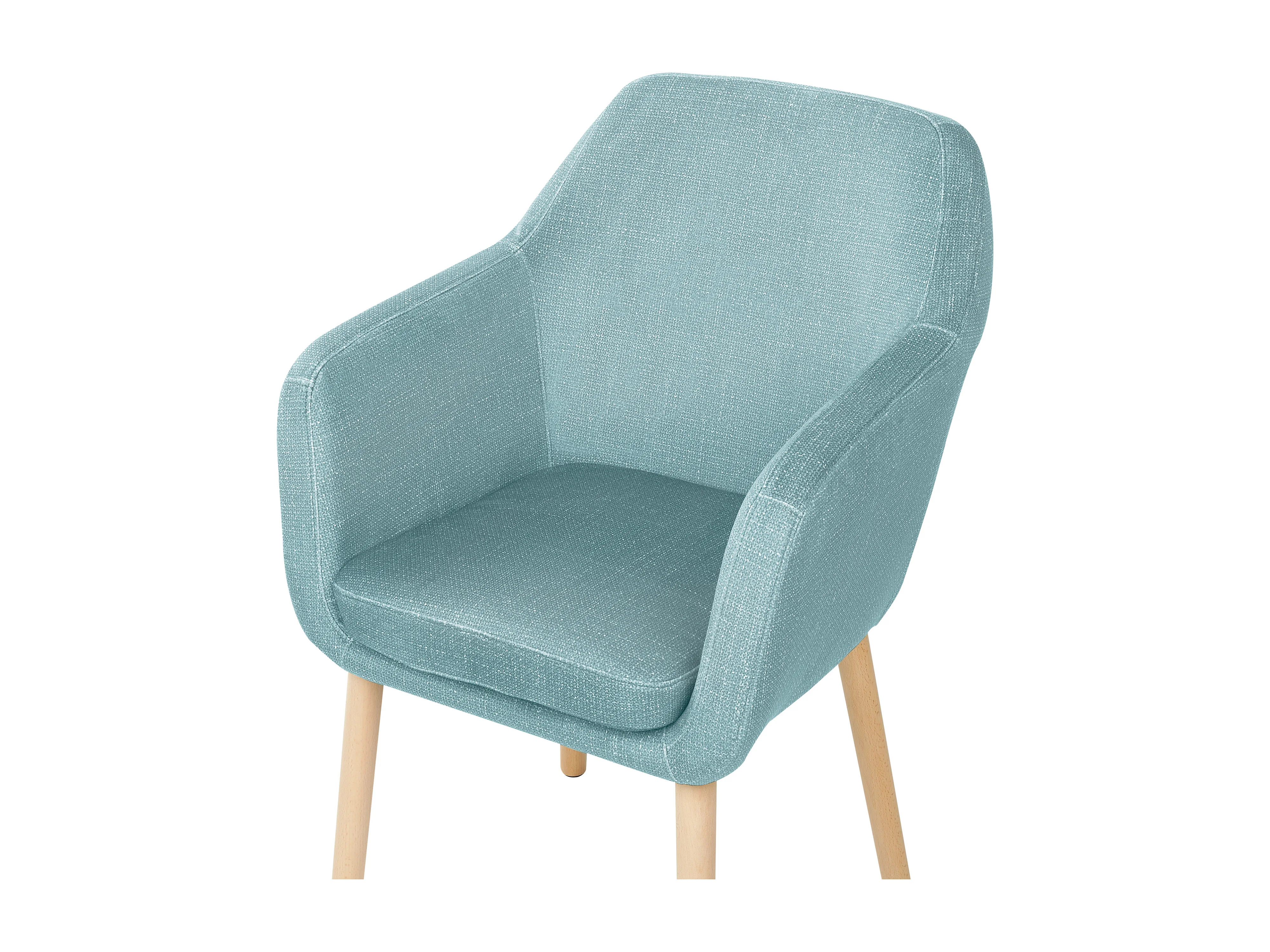 Esszimmerstuhl Samtbezug blau mit hellen Holzbeinen hohe Armlehnen Yorkville II