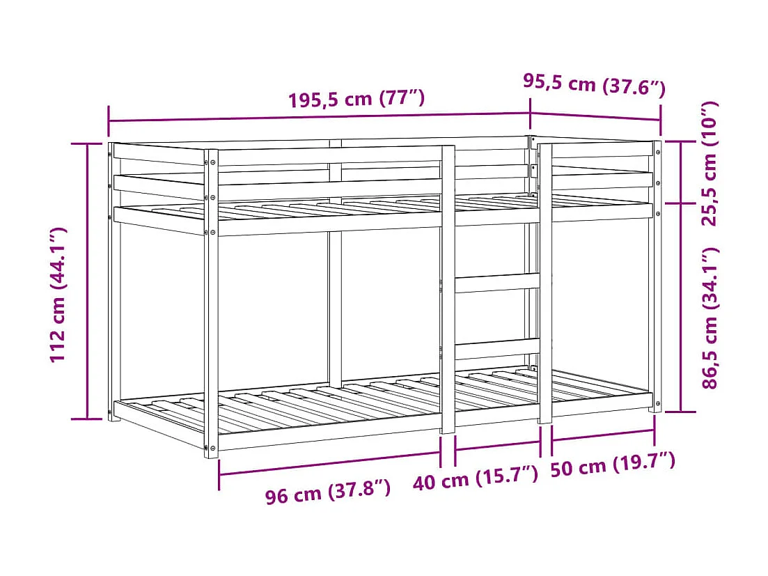 Etagenbett ohne Matratze 90x190 cm Kiefer Massivholz