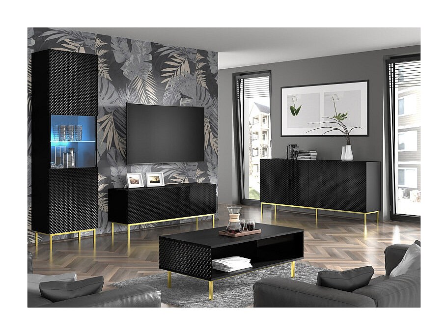 Fernsehtisch RavennaC 150x42x56 Schwarz & Golden