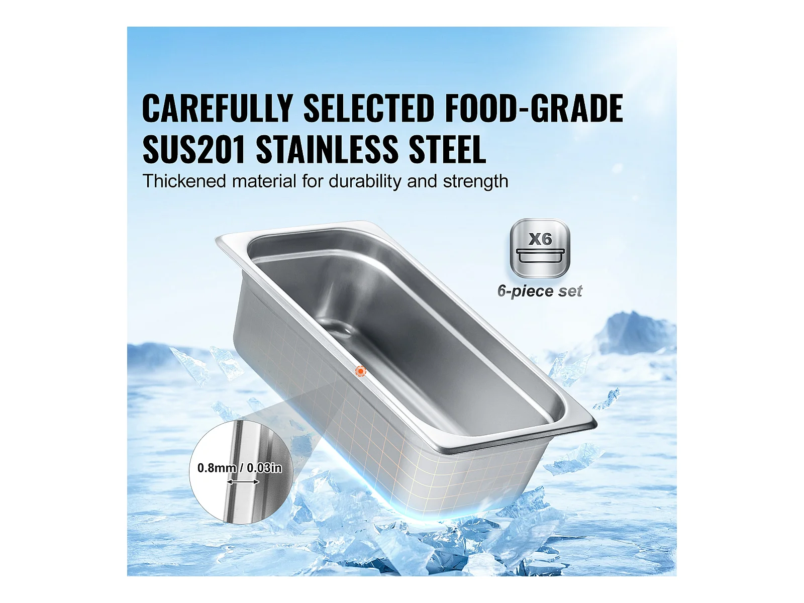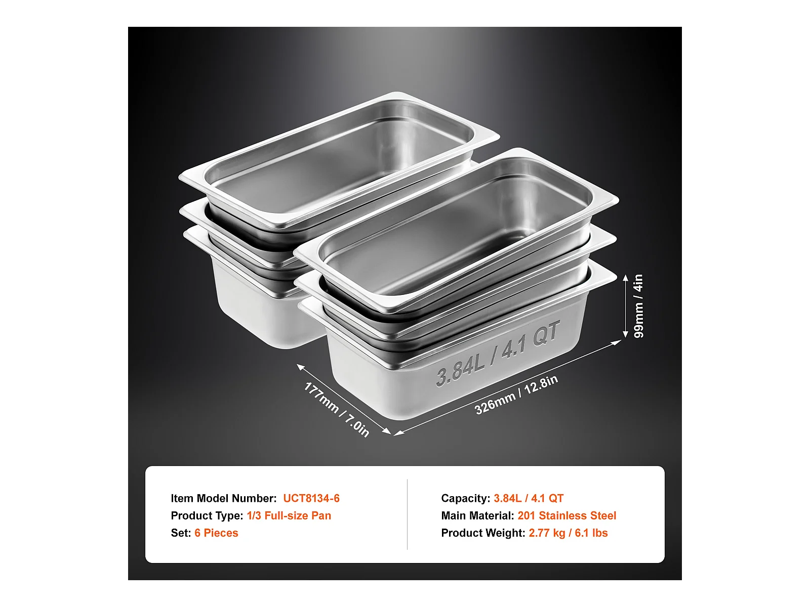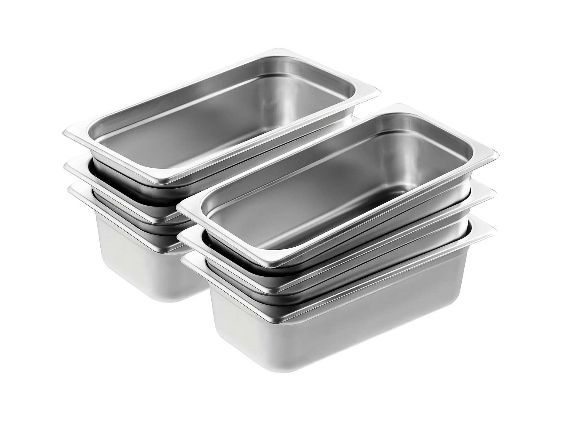 Flache Platte SucceBuy Set von 6 Hotelpfannen Größe 1/3, Tiefe Edelstahlpfanne 10.2CM für Dampftisch