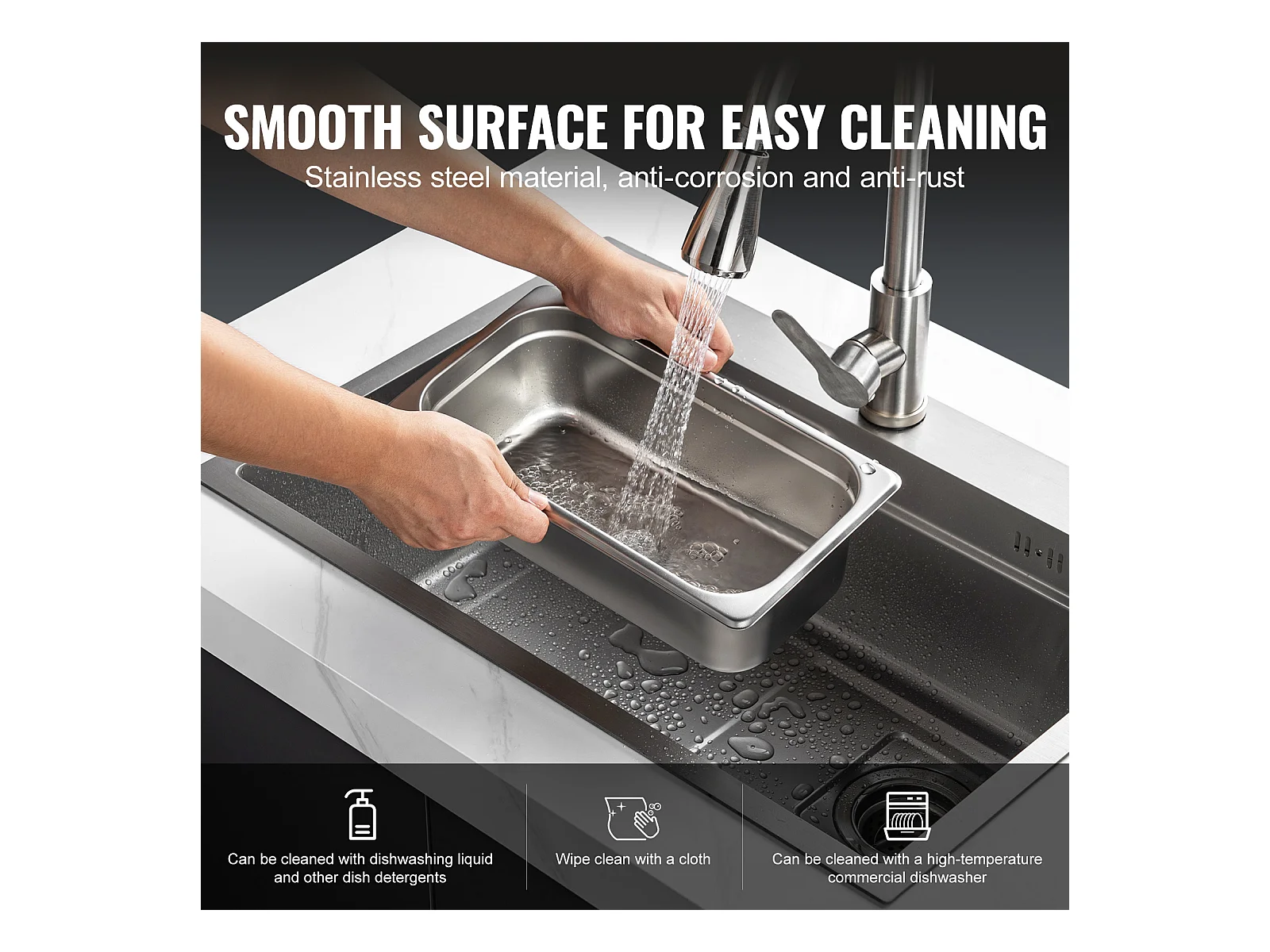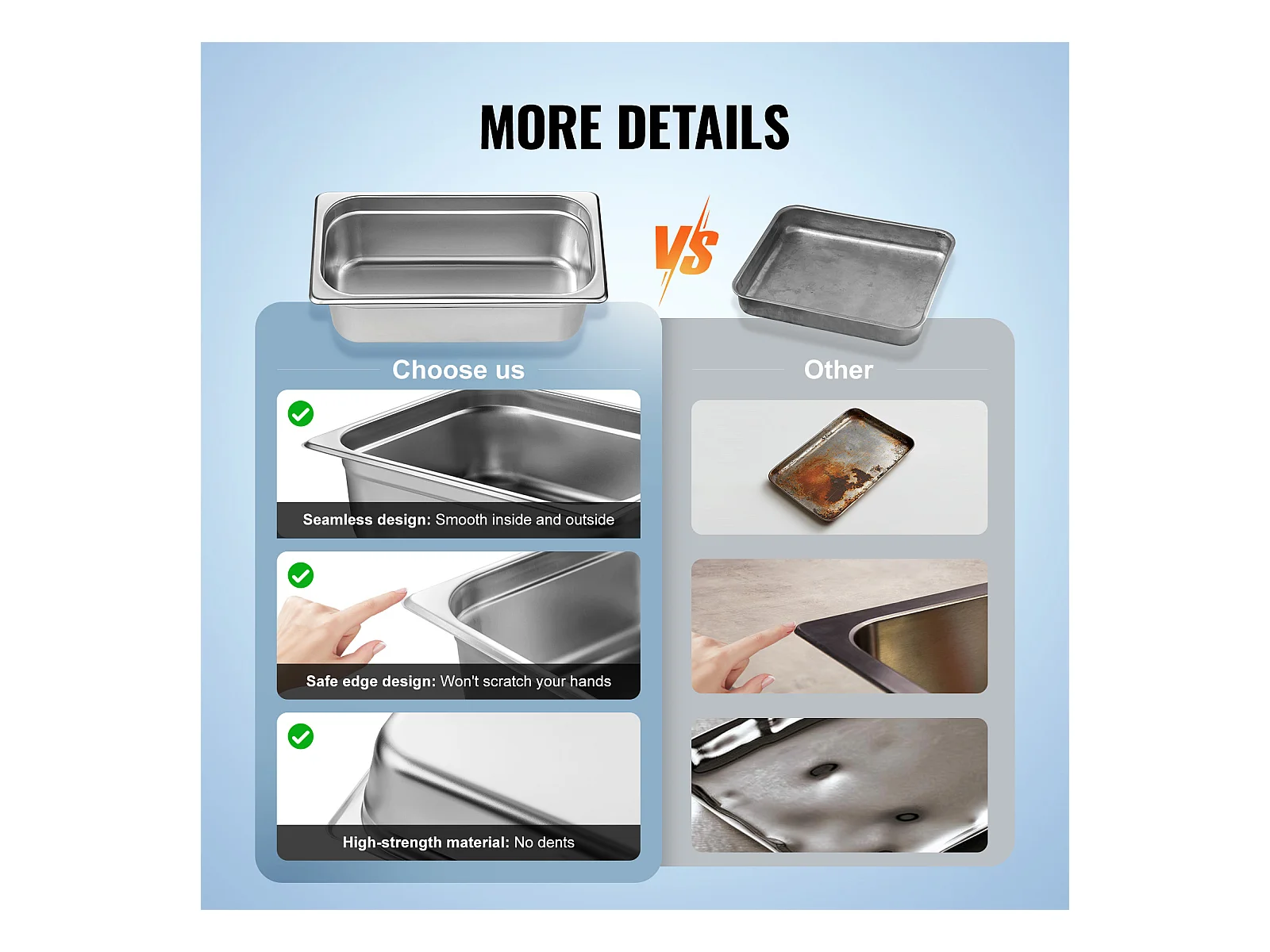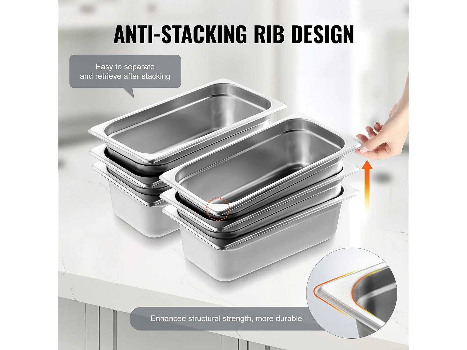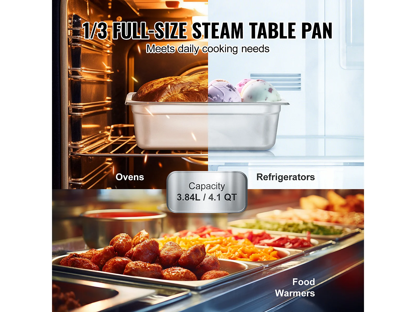 Flache Platte SucceBuy Set von 6 Hotelpfannen Größe 1/3, Tiefe Edelstahlpfanne 10.2CM für Dampftisch