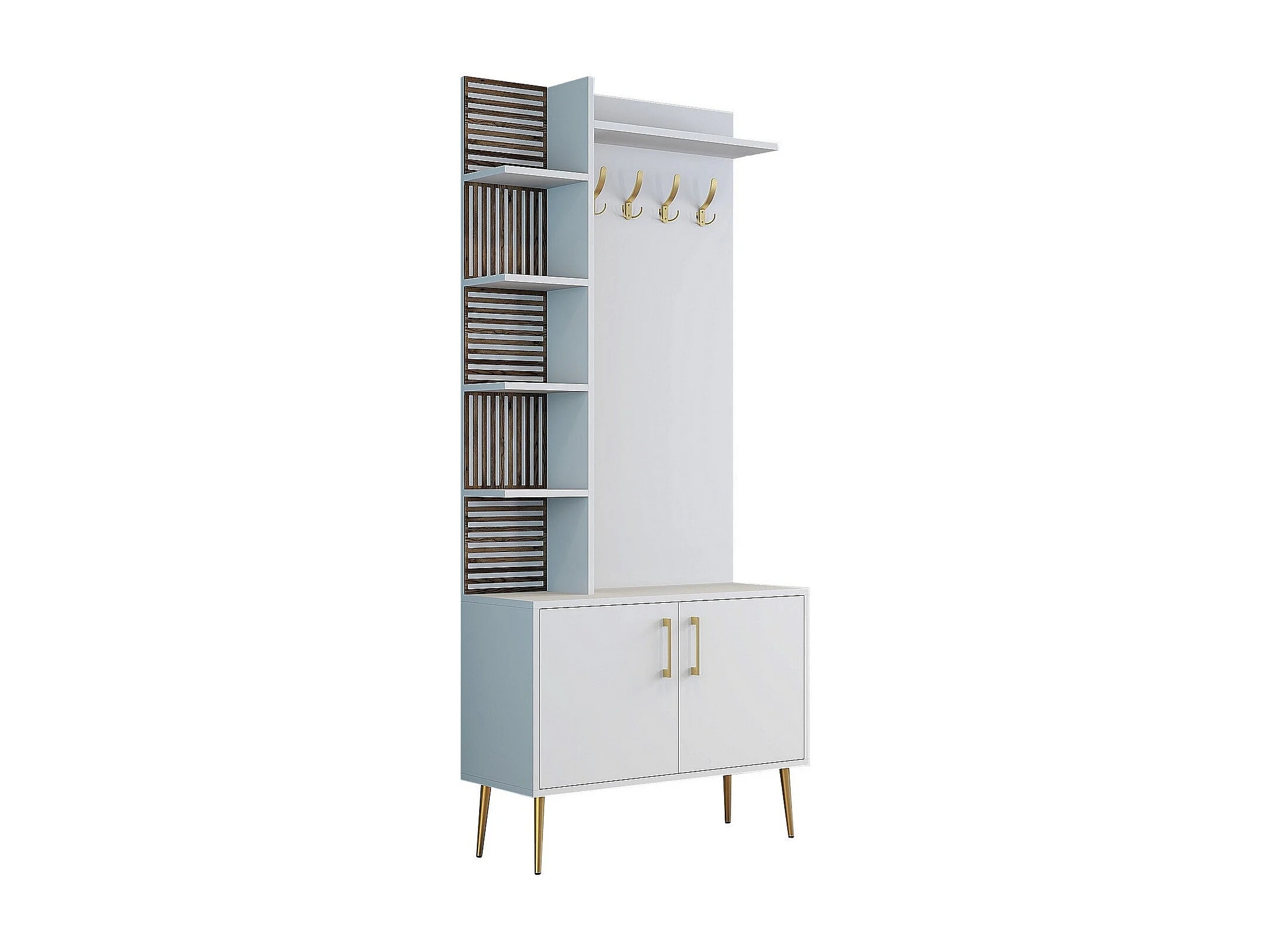 Flurregal – 90 x 35 x 202 cm – Weiß und Gold – Spanplatte