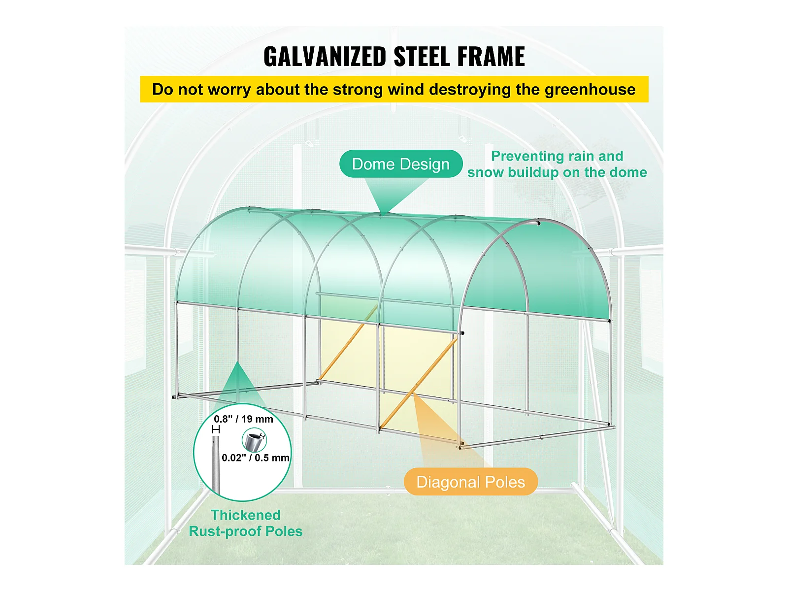 Folientunnel SucceBuy mit Verzinktem Rahmen 4,5 x 2 x 2 m, Wasserdicht