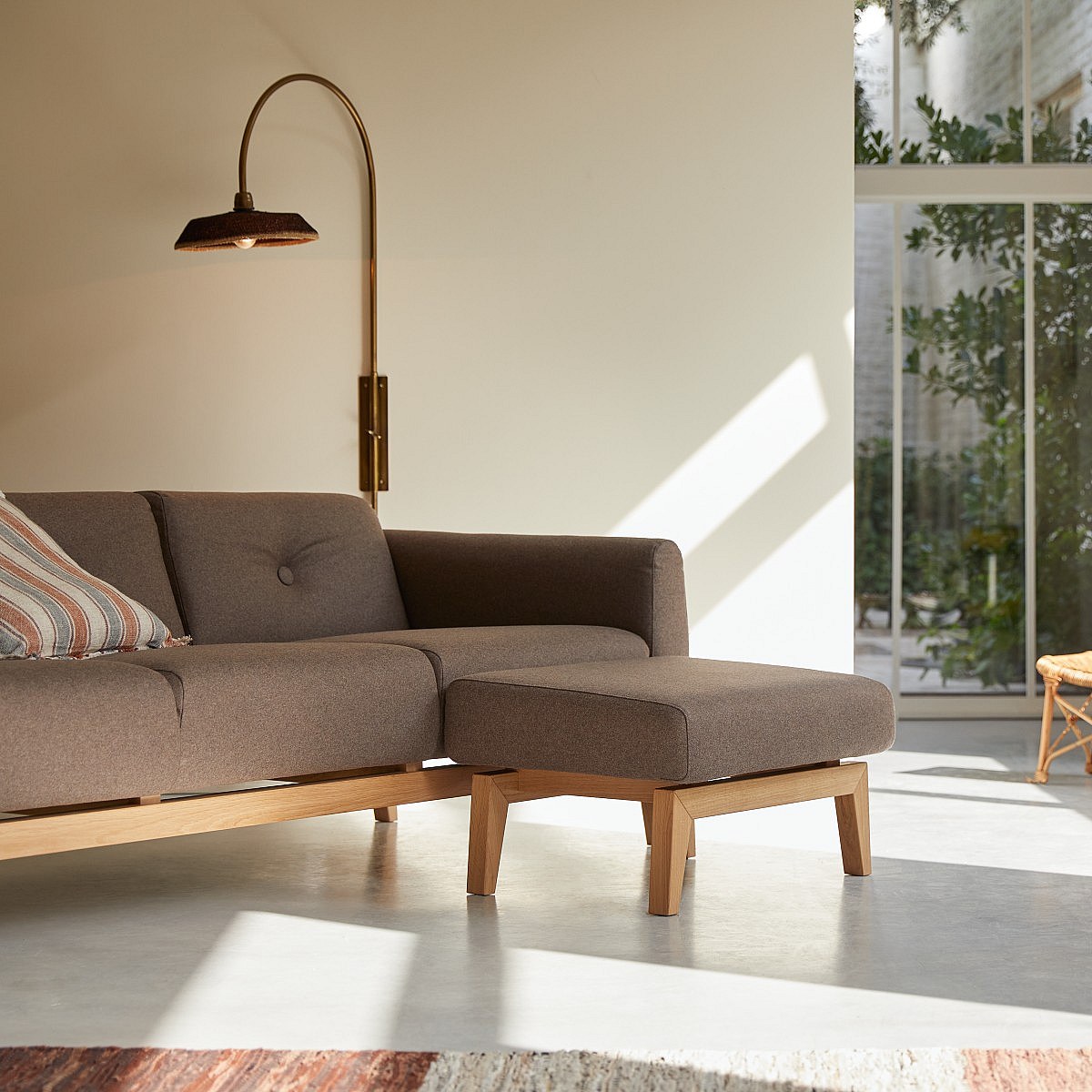 Fußhocker Bjorn aus braunem Stoff, 1 Sitzplatz