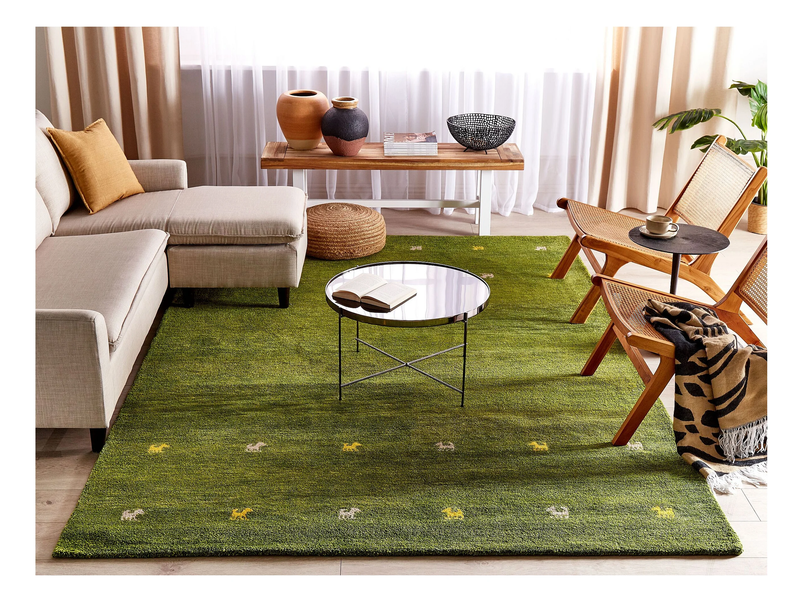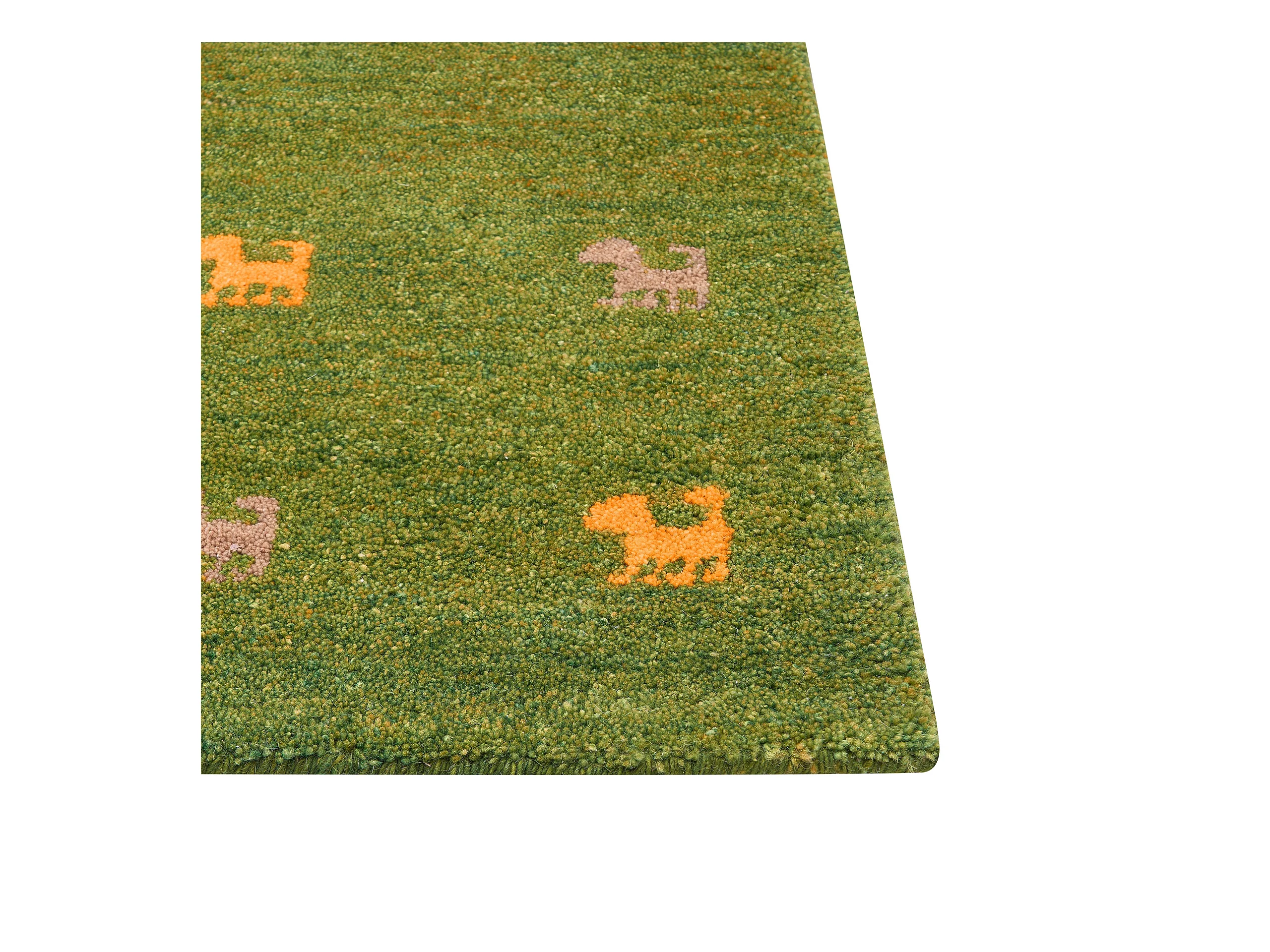 Gabbeh Teppich grün aus Wolle 200x300 cm Hochflor Westernmotiv Tiermuster weich Yulafi