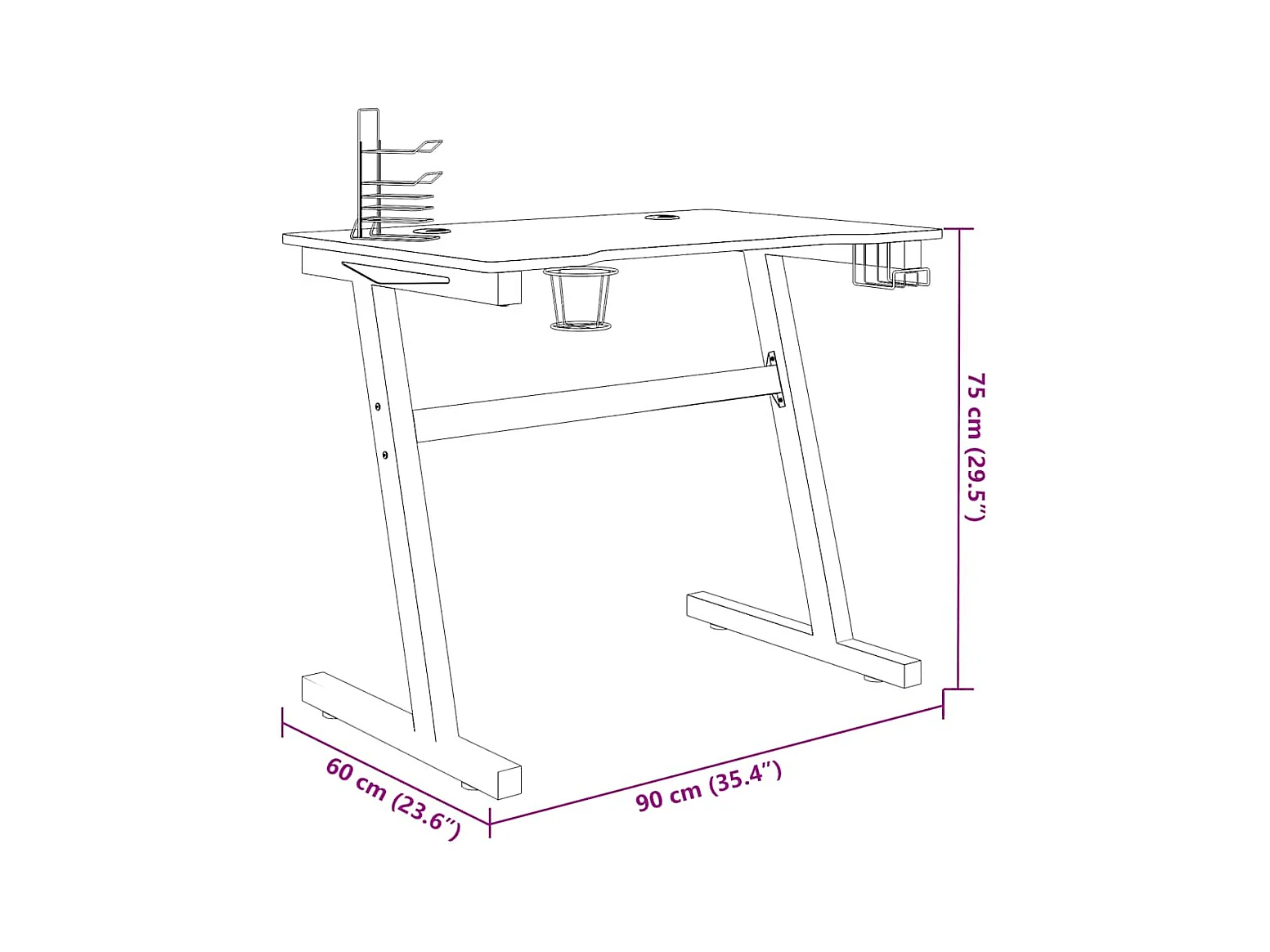 Gaming-Schreibtisch mit LED und Z-Gestell Schwarz 90x60x75 cm