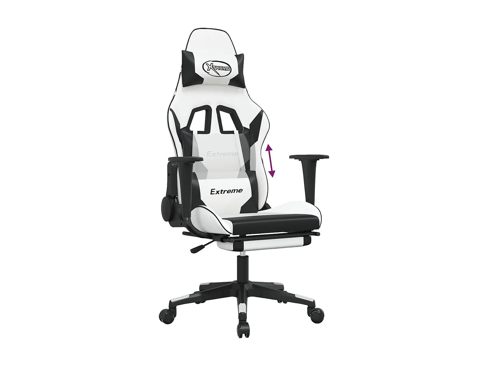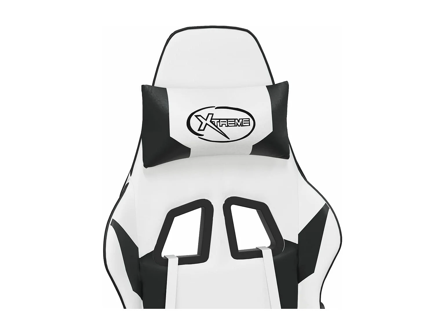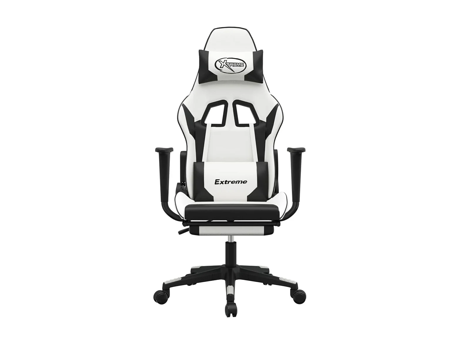 Gaming-Stuhl mit Fußstütze. Weißes und schwarzes Kunstleder