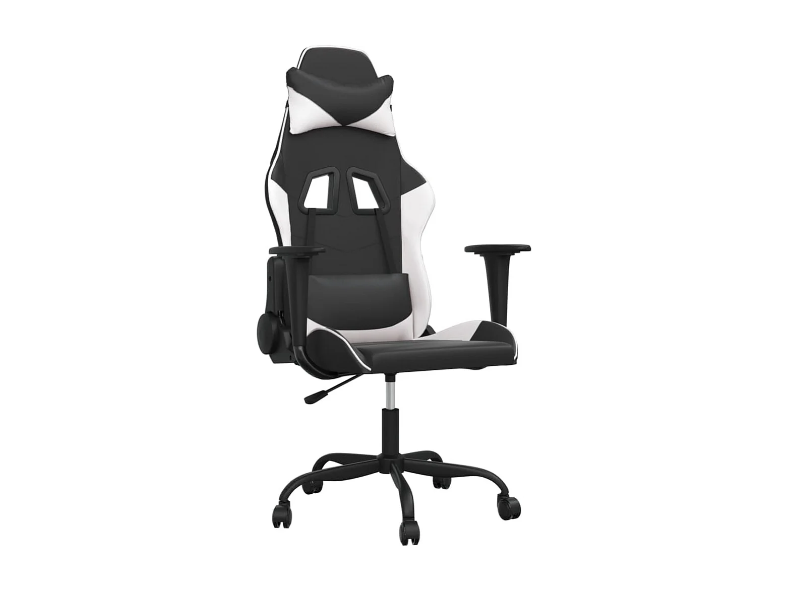 Gaming-Stuhl mit Massagefunktion Schwarz und Weiß Kunstleder