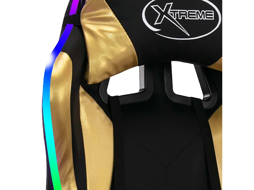 Gaming-Stuhl mit RGB LED-Leuchten Gold und Schwarz Kunstleder