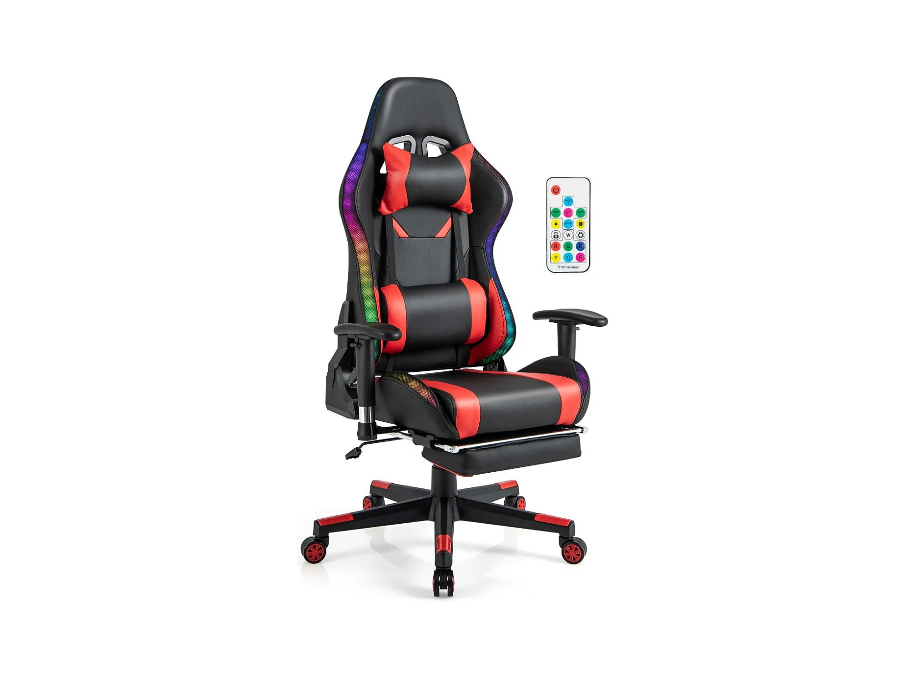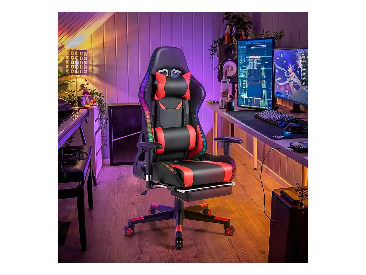 Gaming Stuhl mit RGB-LED-Leuchten & Einziehbarer Fußstütze Ergonomischer Bürostuhl Rot