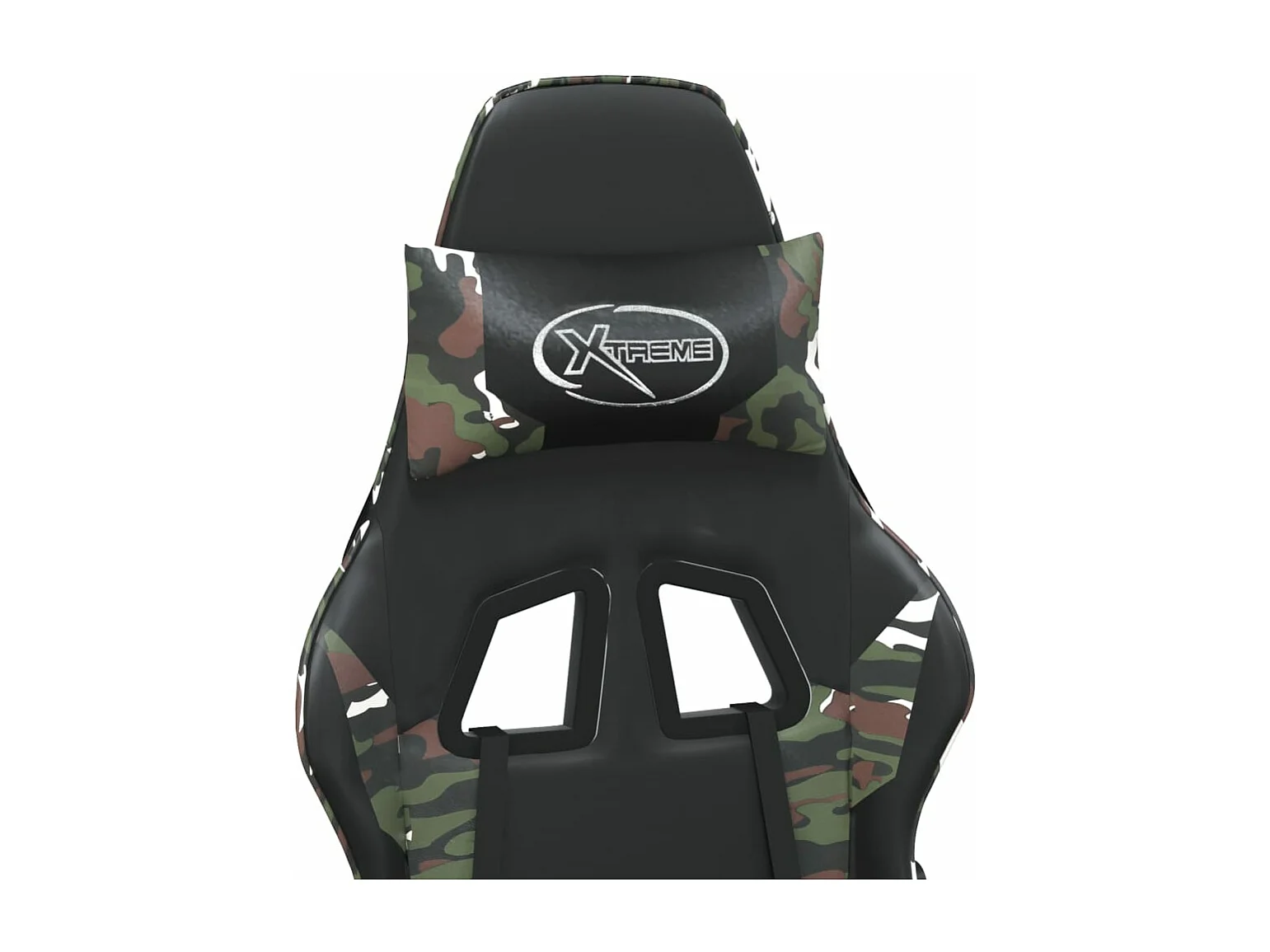 Gaming-Stuhl mit Fußstütze. Schwarzes und tarnfarbenes Kunstleder