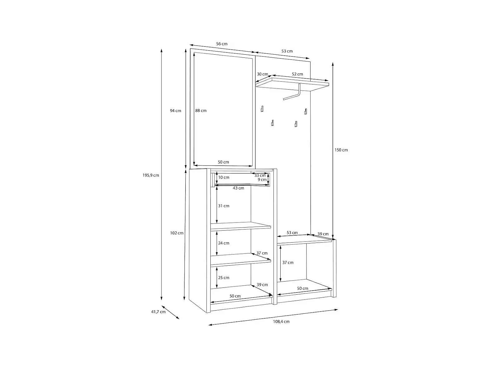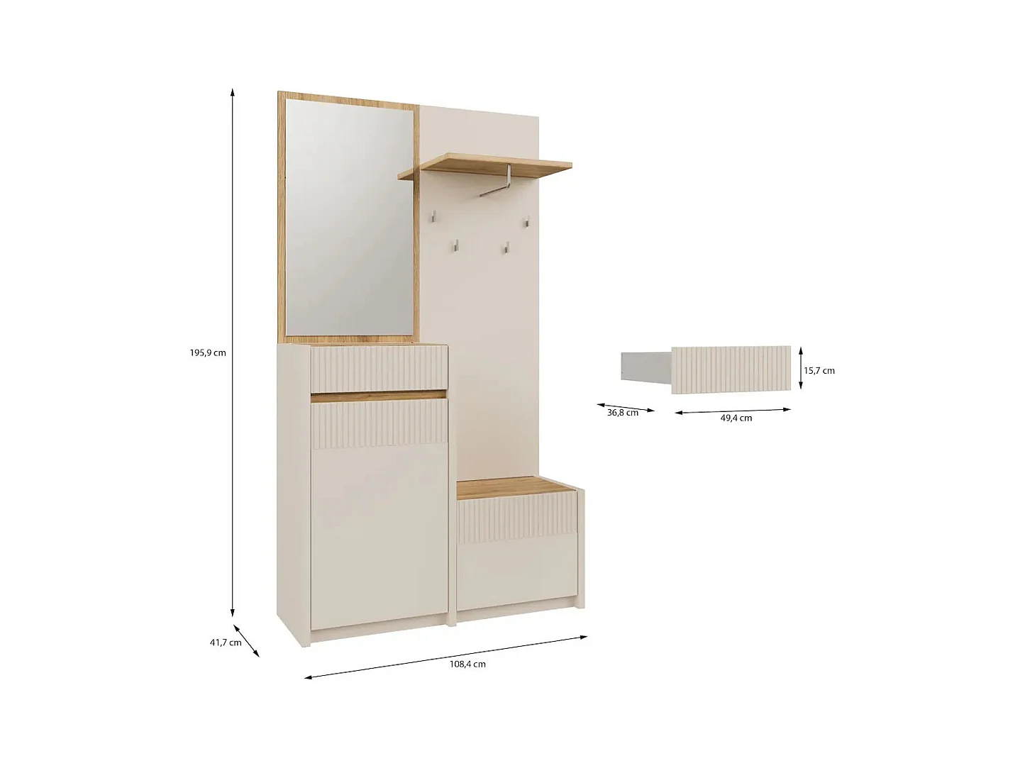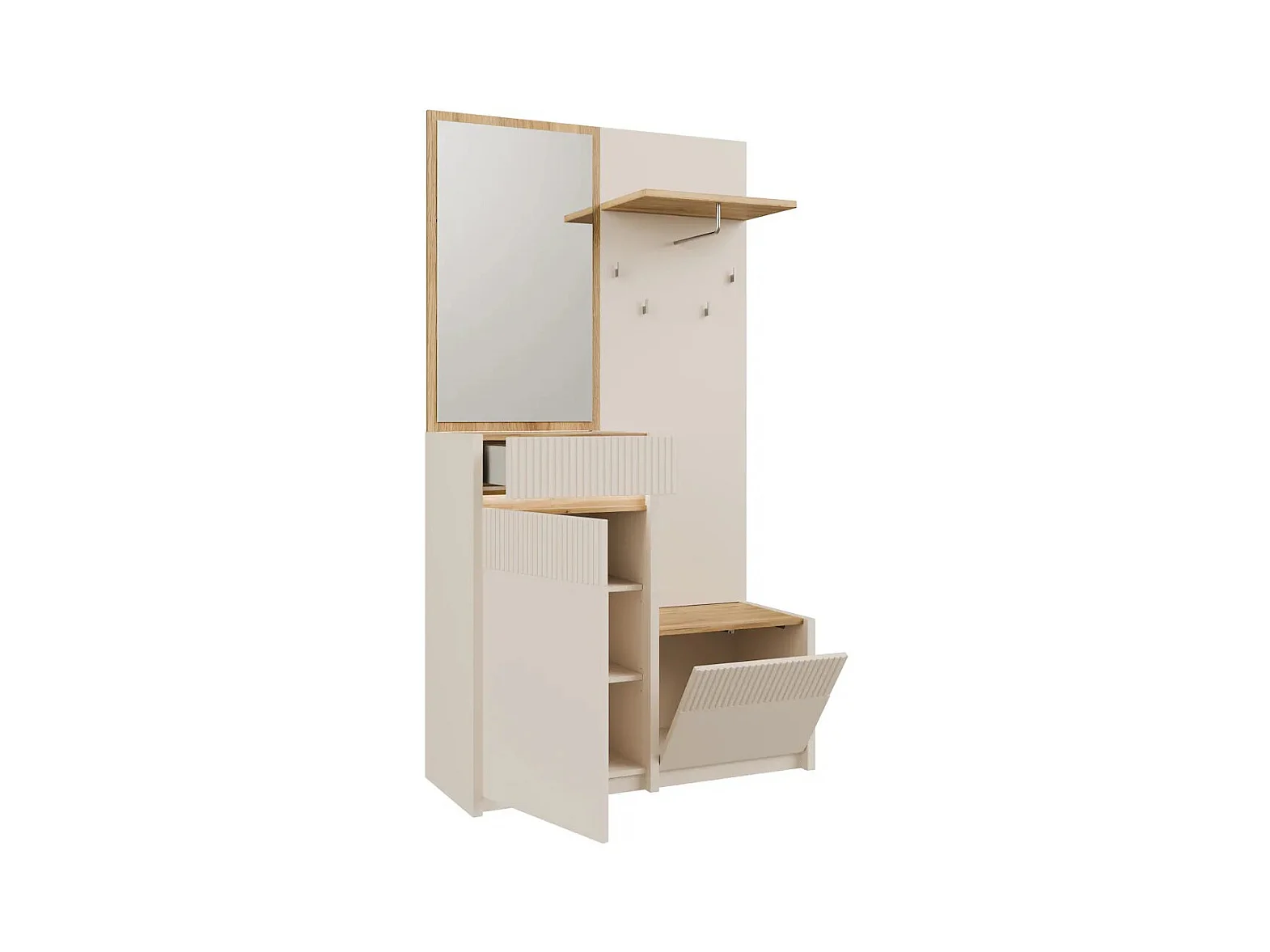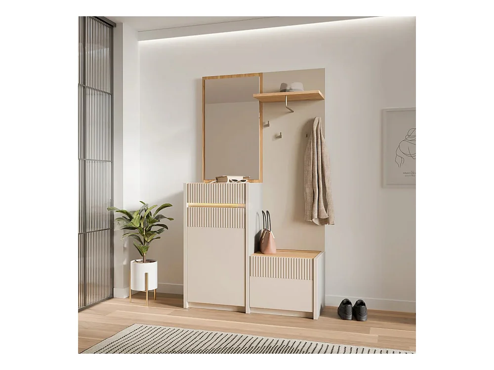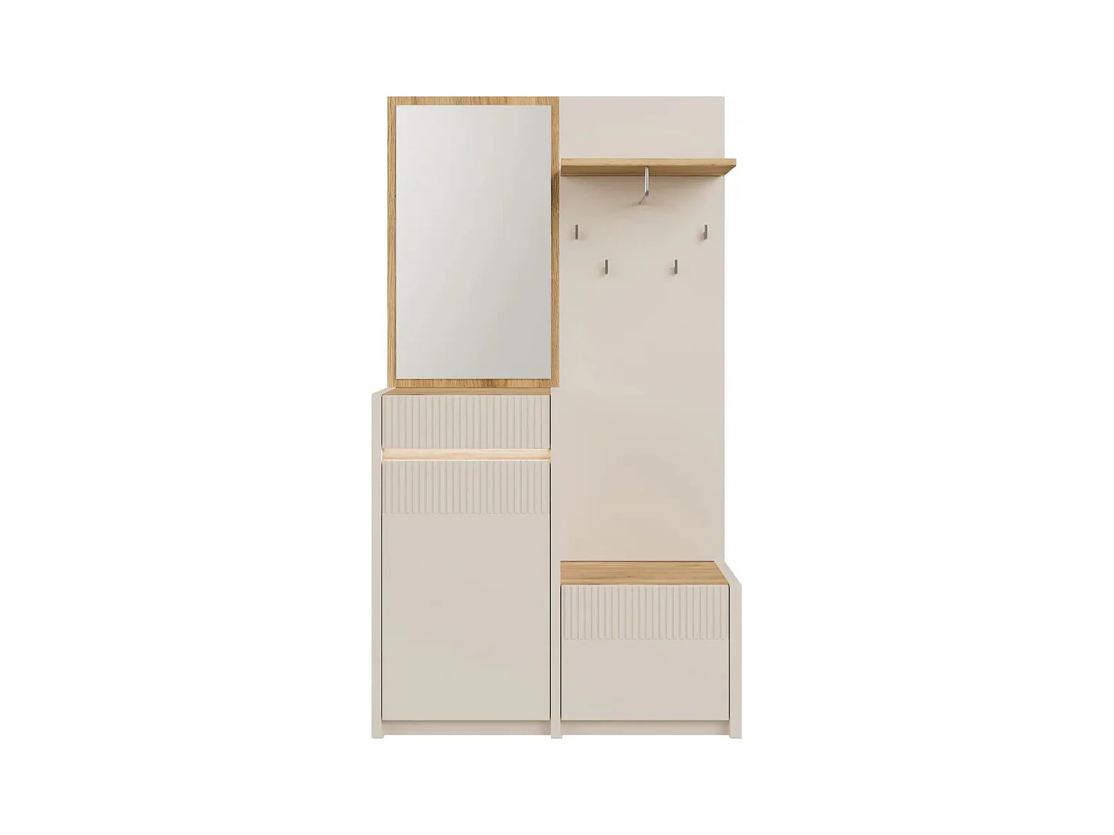 Garderobe Skver/Schubalden/Drehtüren/Kleiderstange/Spiegel/Beigegrau&Artisan