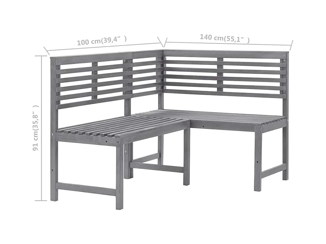 Garten-Eckbank Grau 140 cm Massivholz Akazie