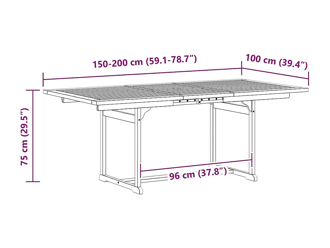 Garten-Esstisch (150-200)x100x75 cm Massivholz Akazie