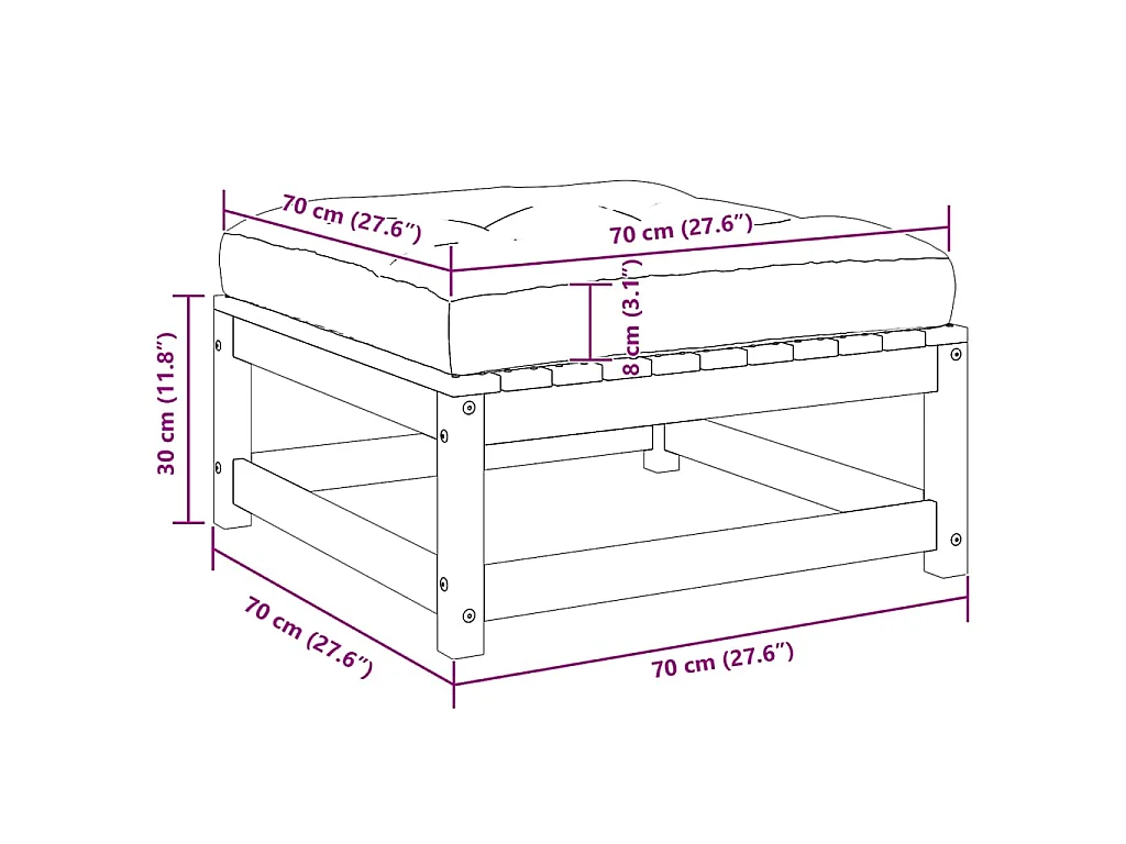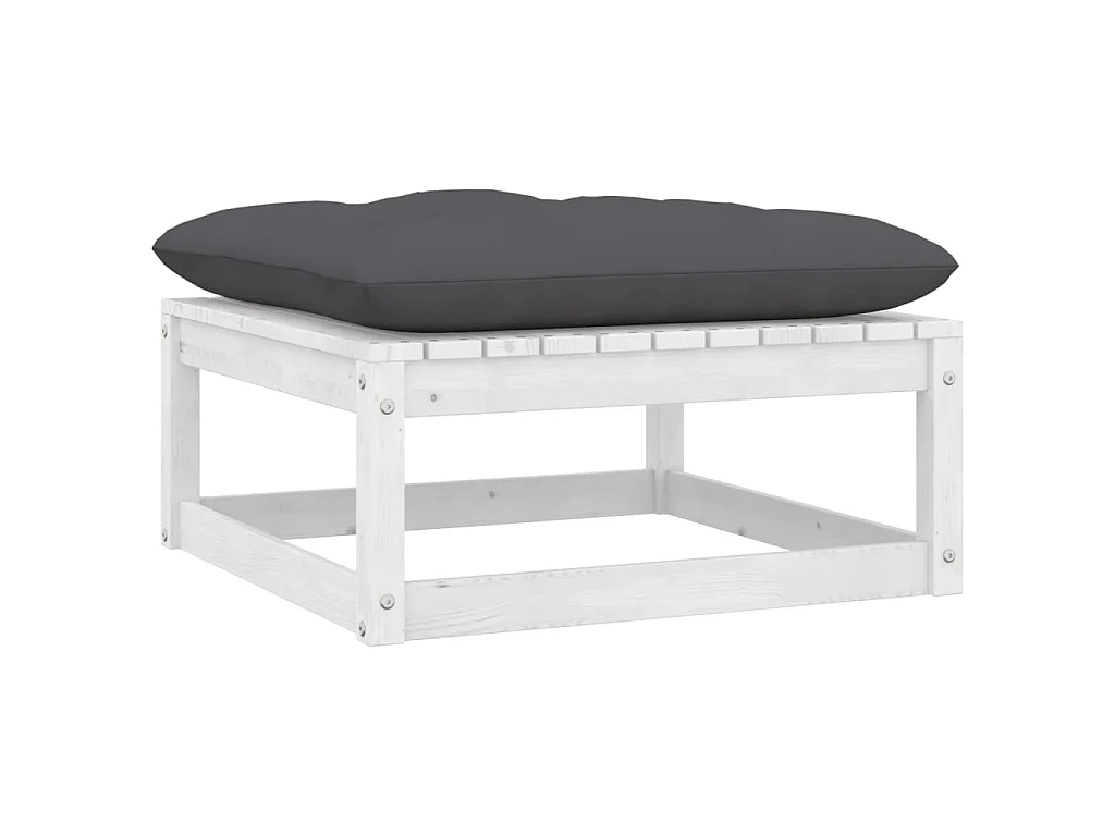 Garten-Fußhocker mit Kissen Weiß Kiefer Massivholz