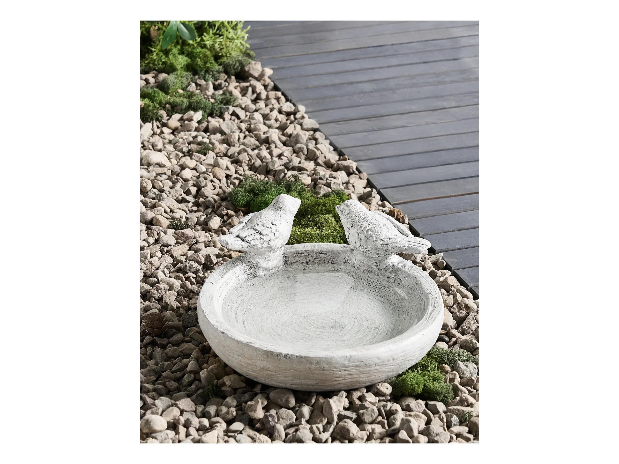 Garten Vogeltränke Futterschale MgO grau rund ⌀ 26 cm Antik-Optik rustikal Mamou