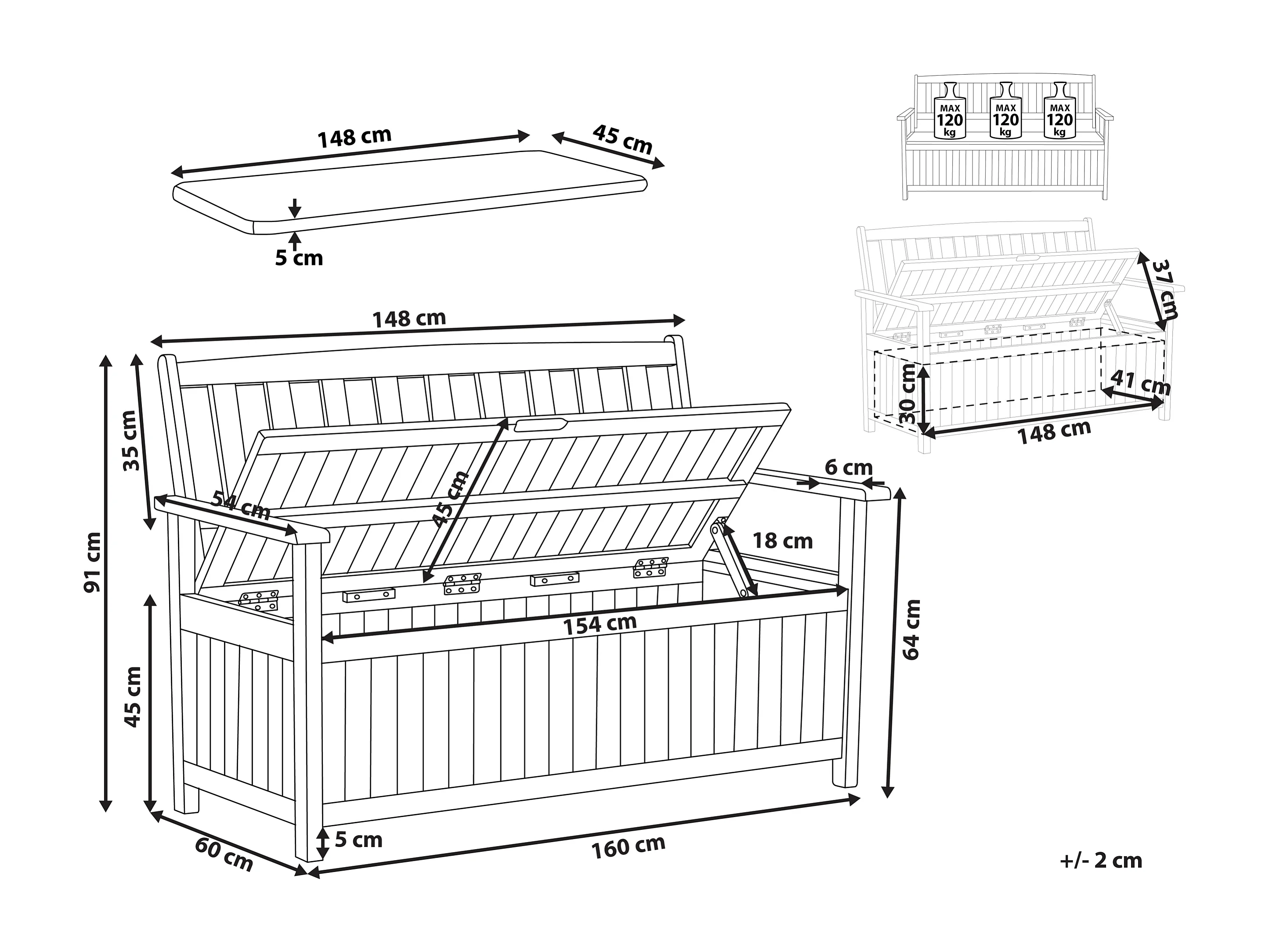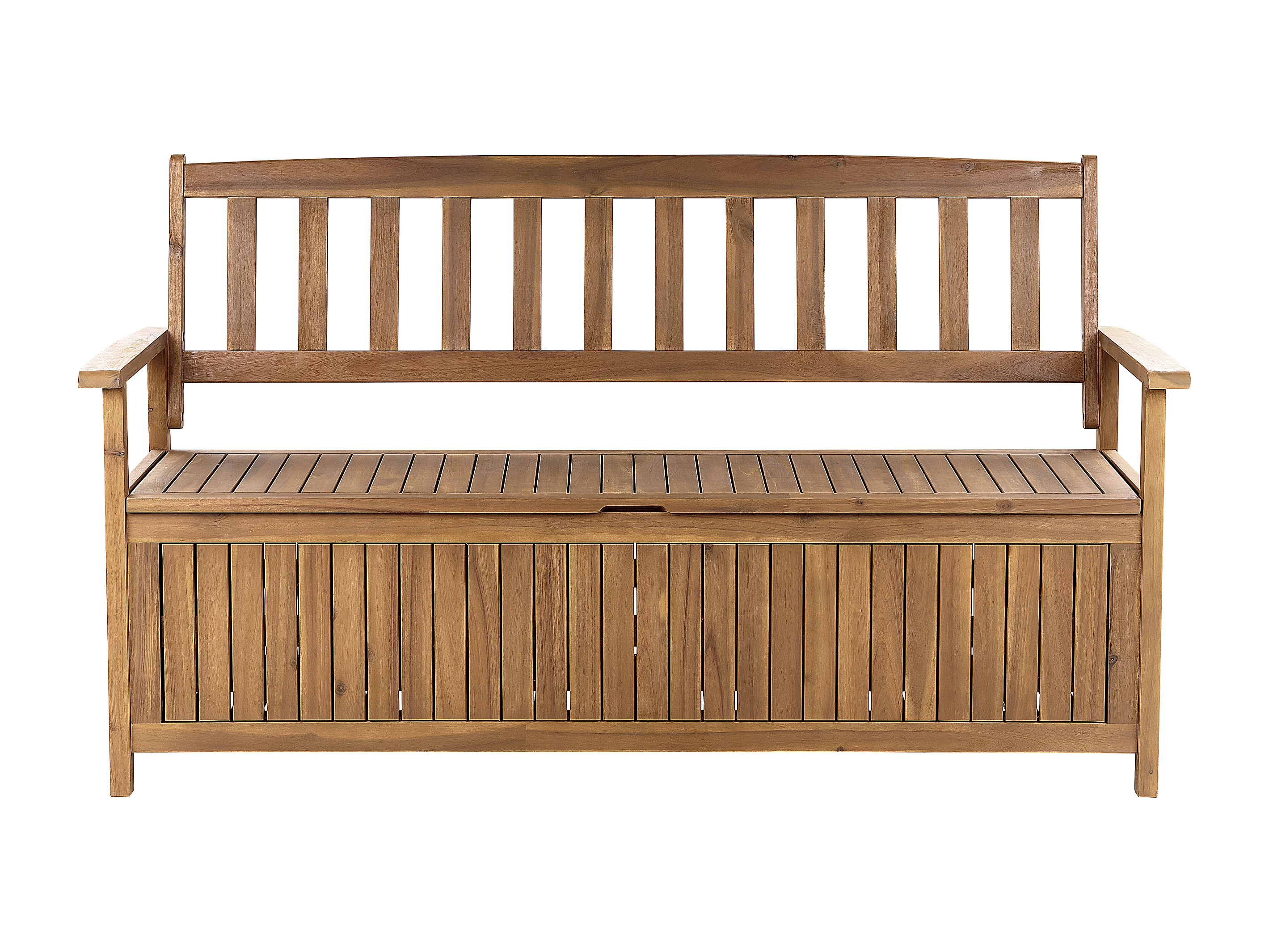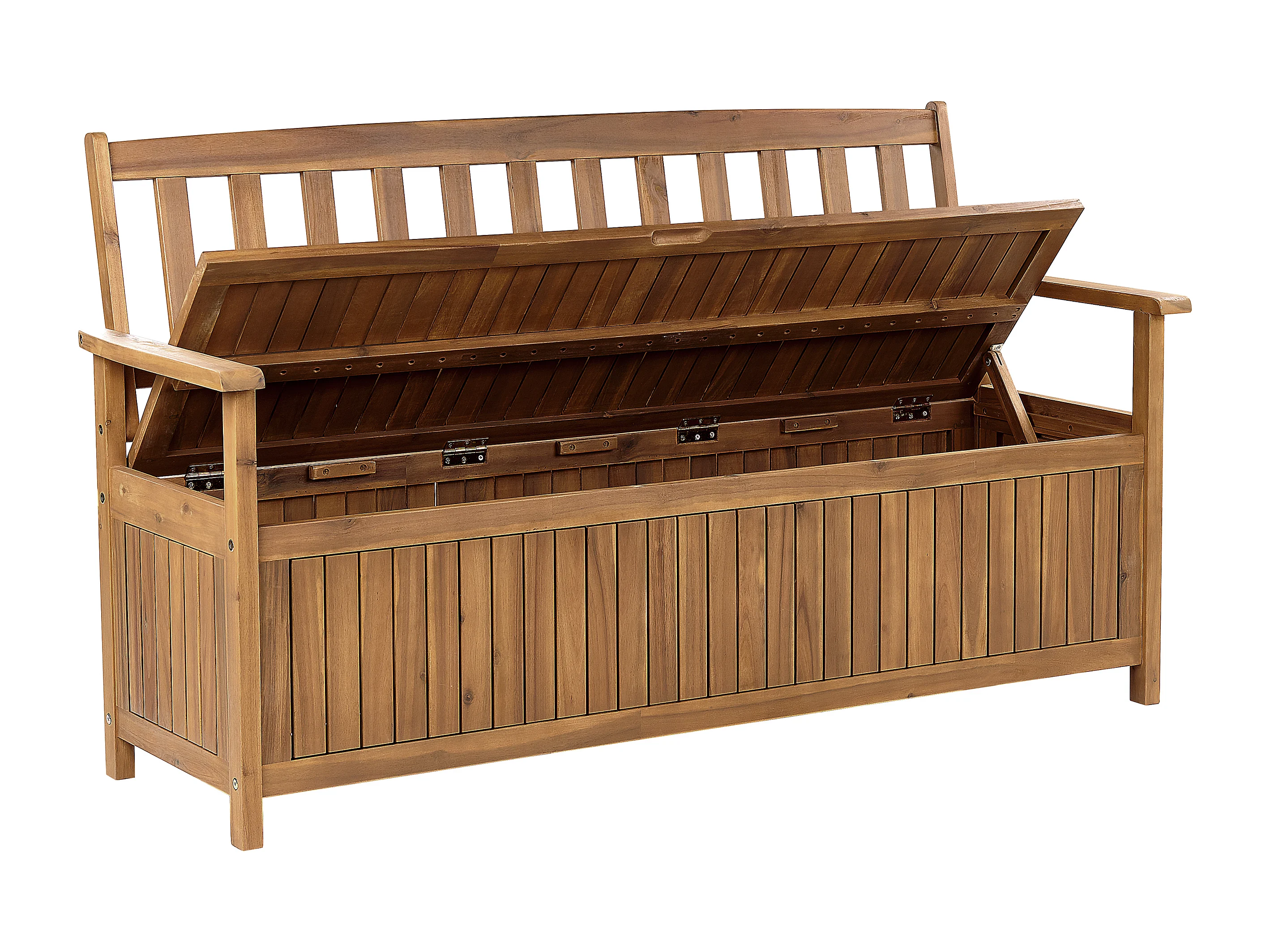 Gartenbank Akazienholz 3-Sitzer mit Stauraum Auflage beige taupe 160cm Sovana