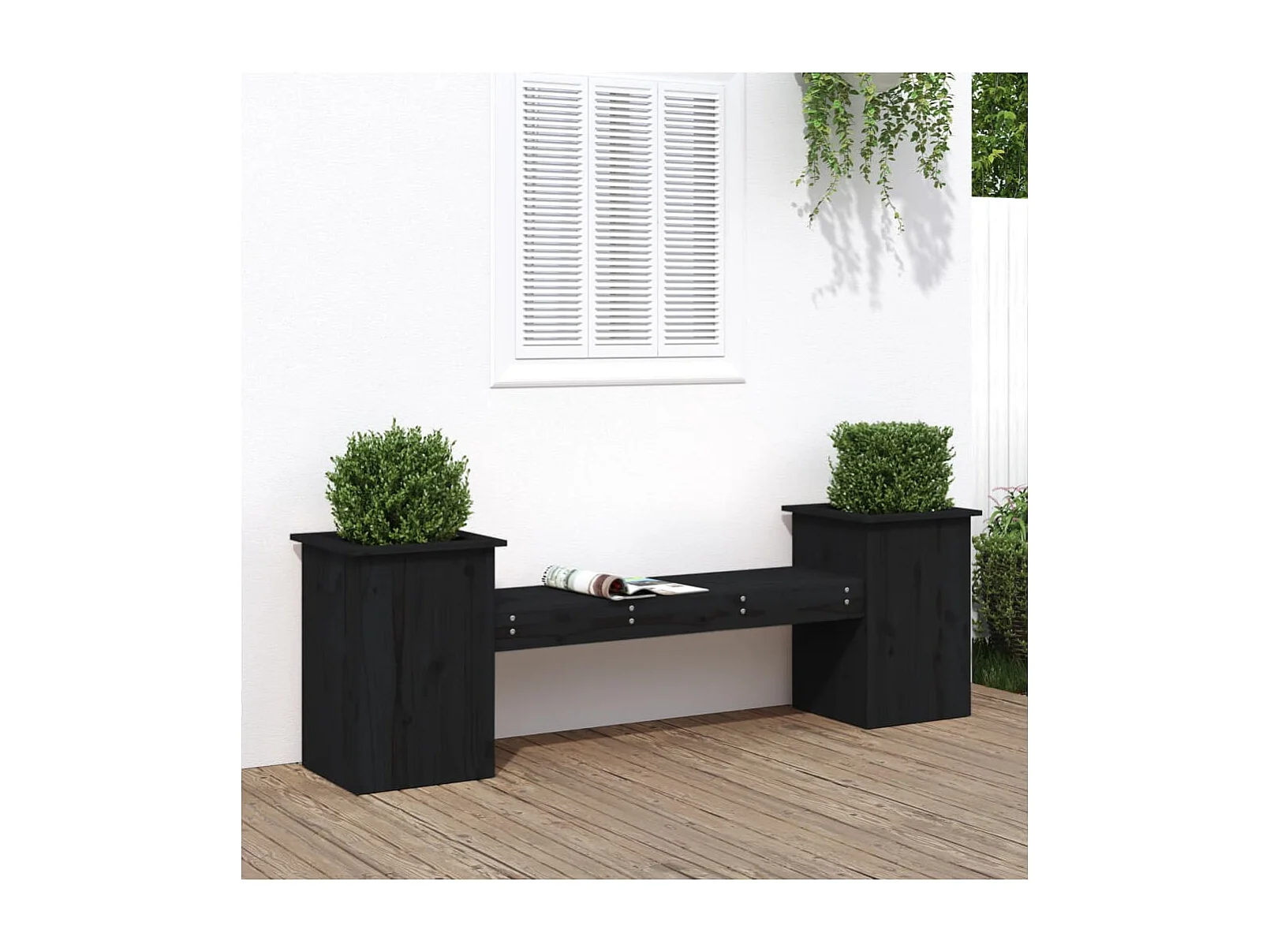 Gartenbank mit Pflanzkübeln Schwarz Massivholz Kiefer