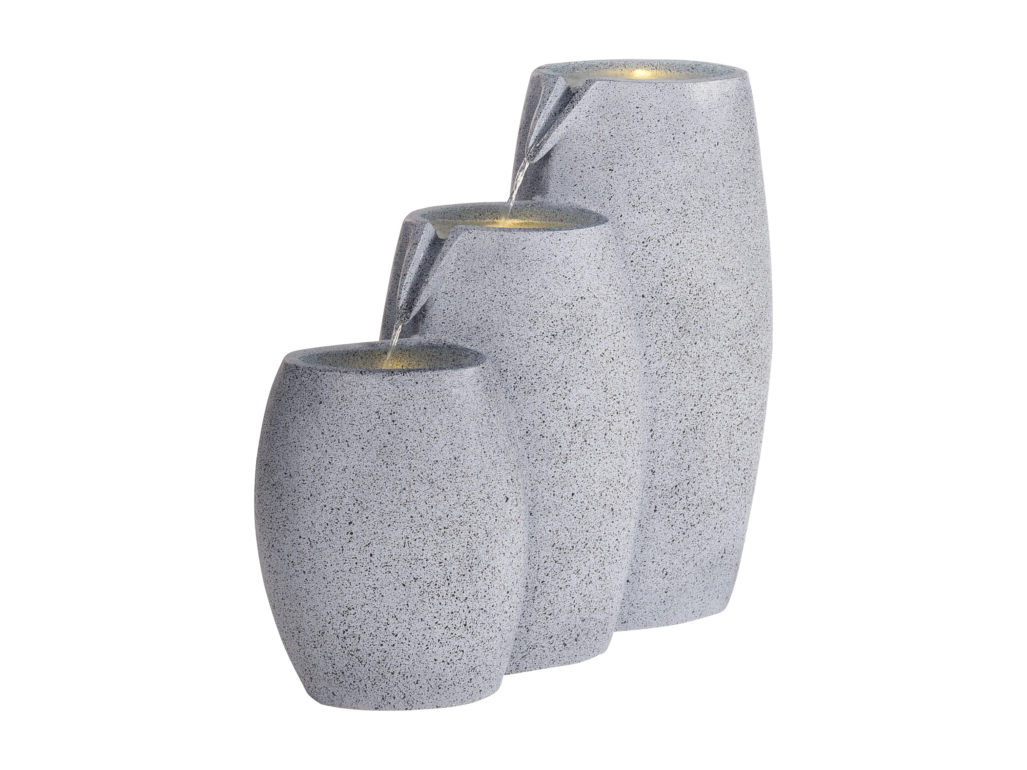 Kaskadierende Outdoor-Wasseranlage – Elektrischer Gartenbrunnen in Grau – 3 warmweiße LED-Leuchten – Tranquil Tiers