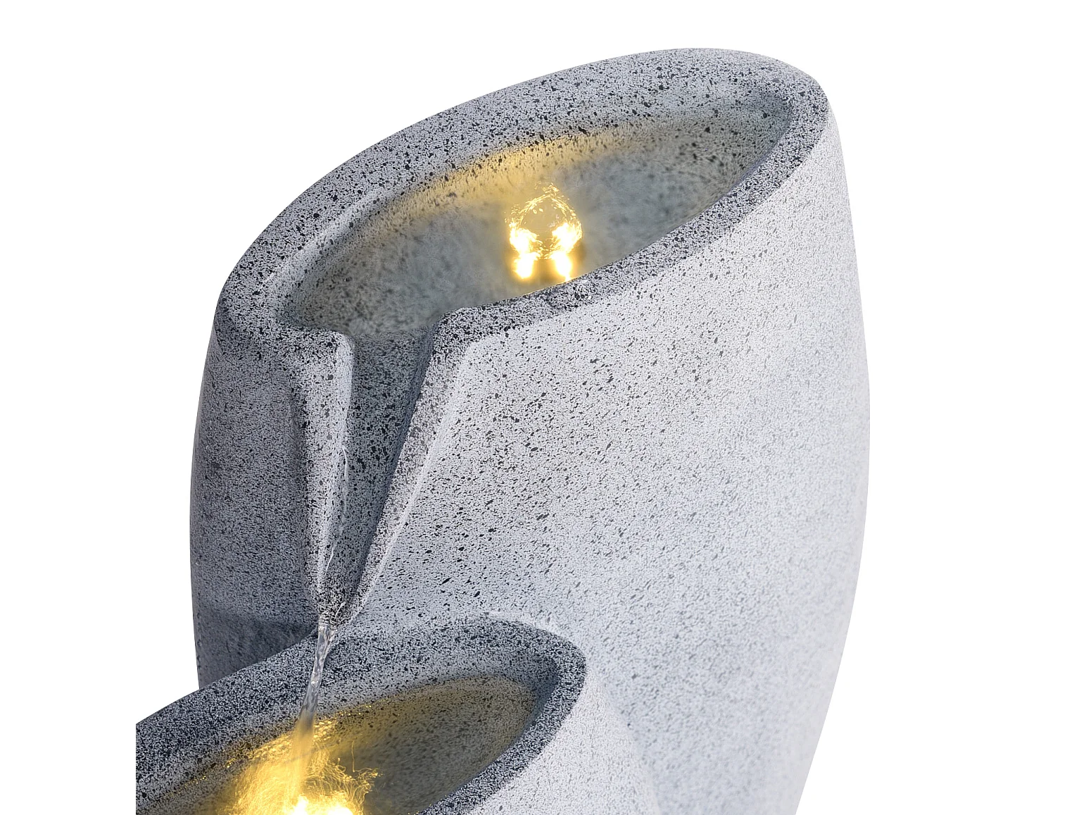 Kaskadierende Outdoor-Wasseranlage – Elektrischer Gartenbrunnen in Grau – warmweiße LED-Leuchten – Harmony Falls