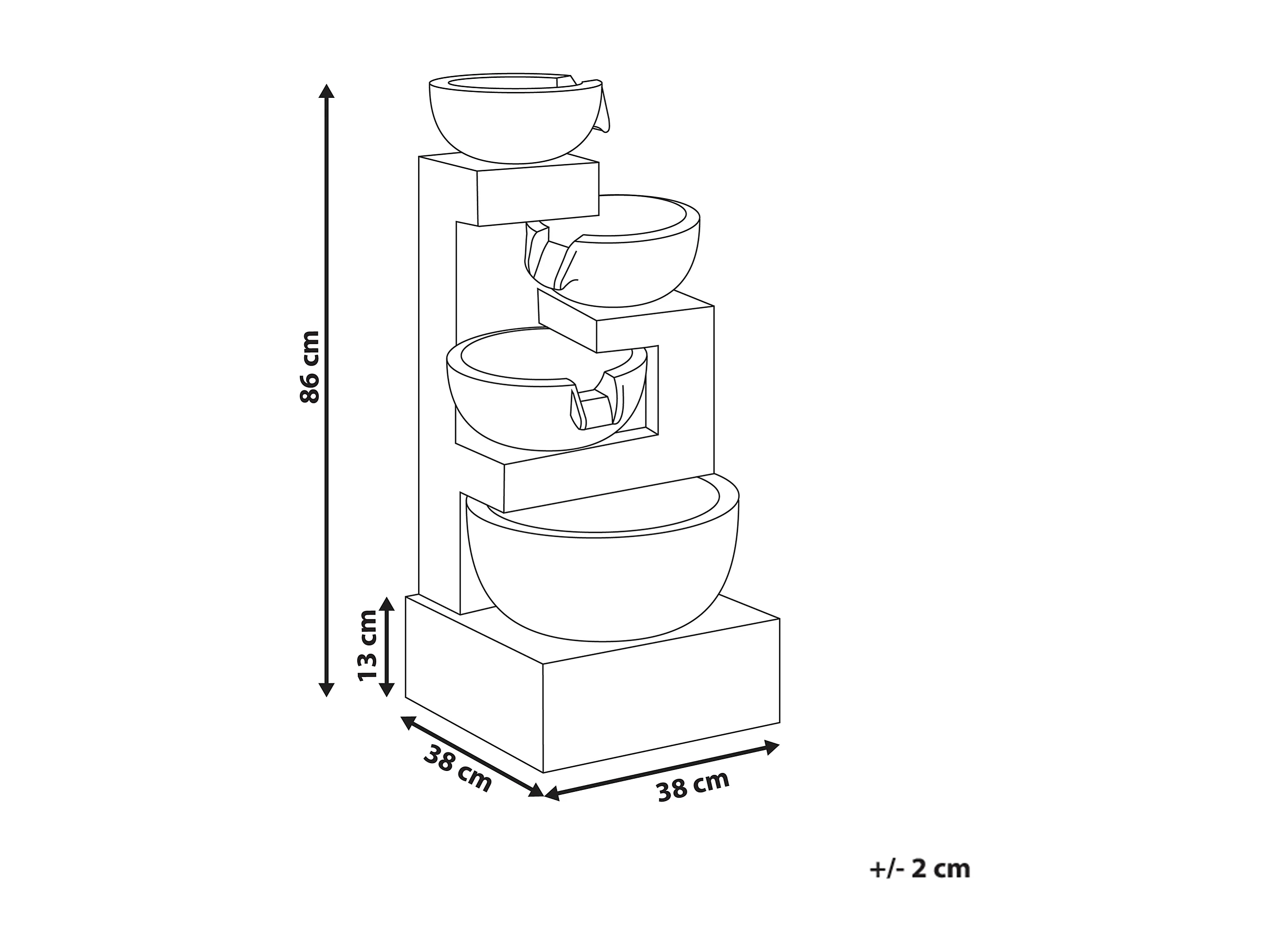Kaskadierende Outdoor-Wasseranlage – Elektrischer Gartenbrunnen in Grau – 3 warmweiße LED-Leuchten – Tranquil Tiers