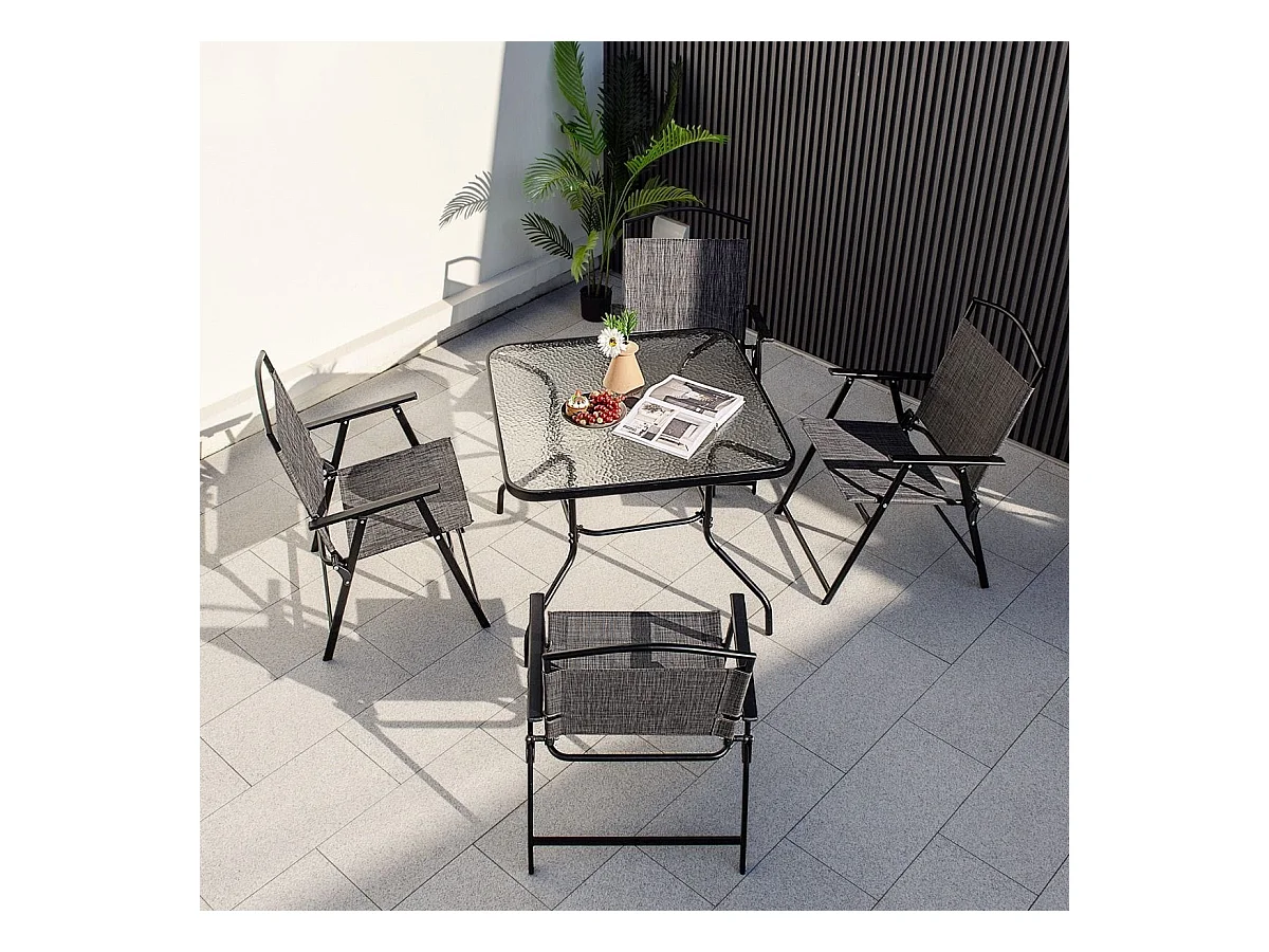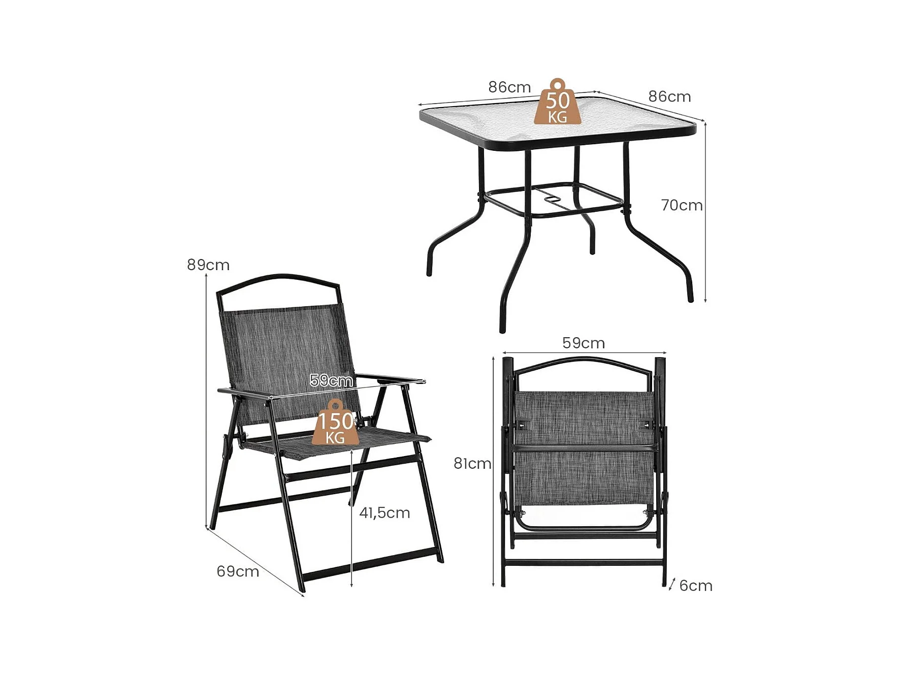 5-TLG. Gartenmöbel Set Terrassenmöbel inkl. 4 Klappstühle 1 Tisch mit Schirmloch Grau + Schwarz