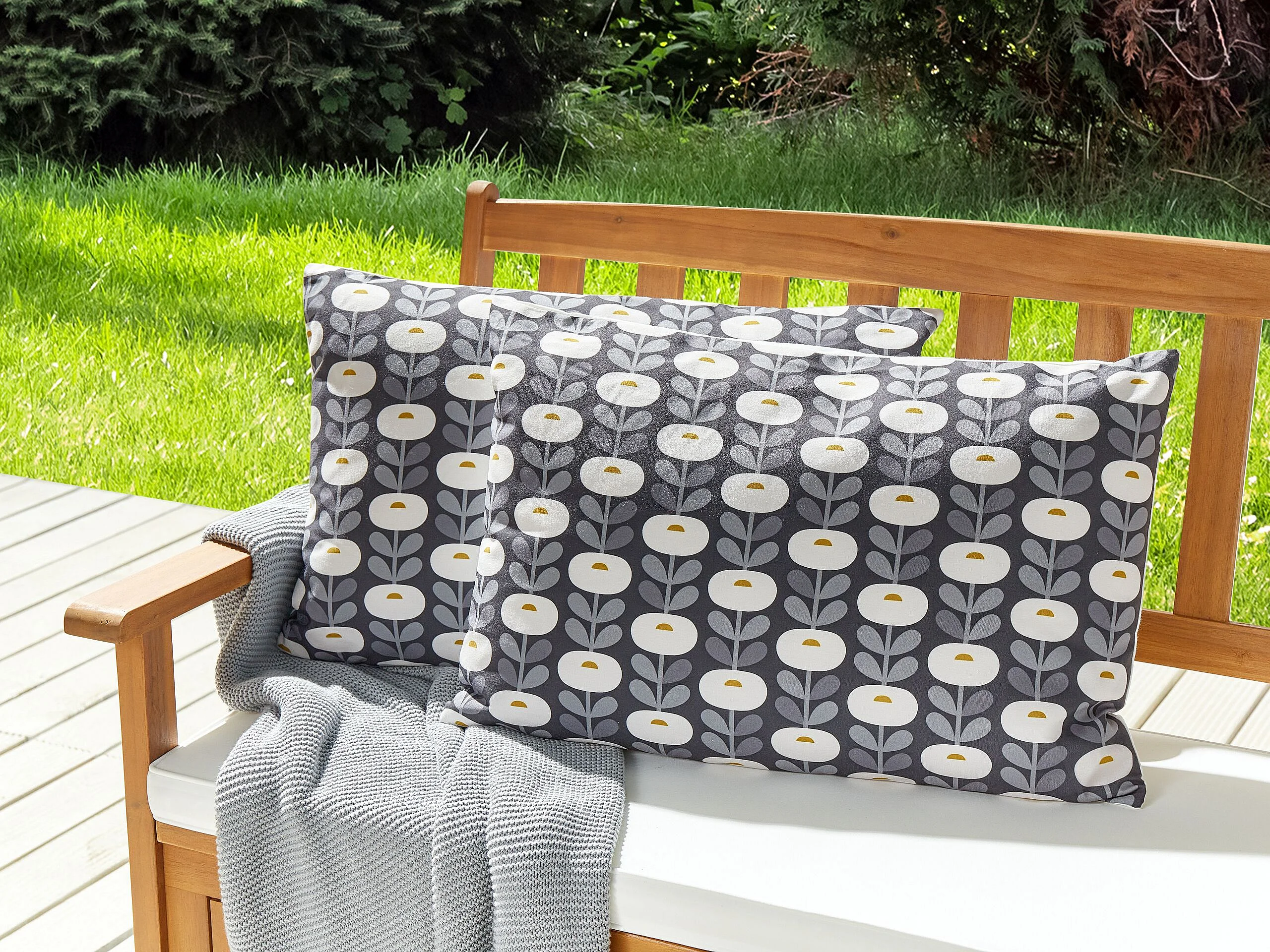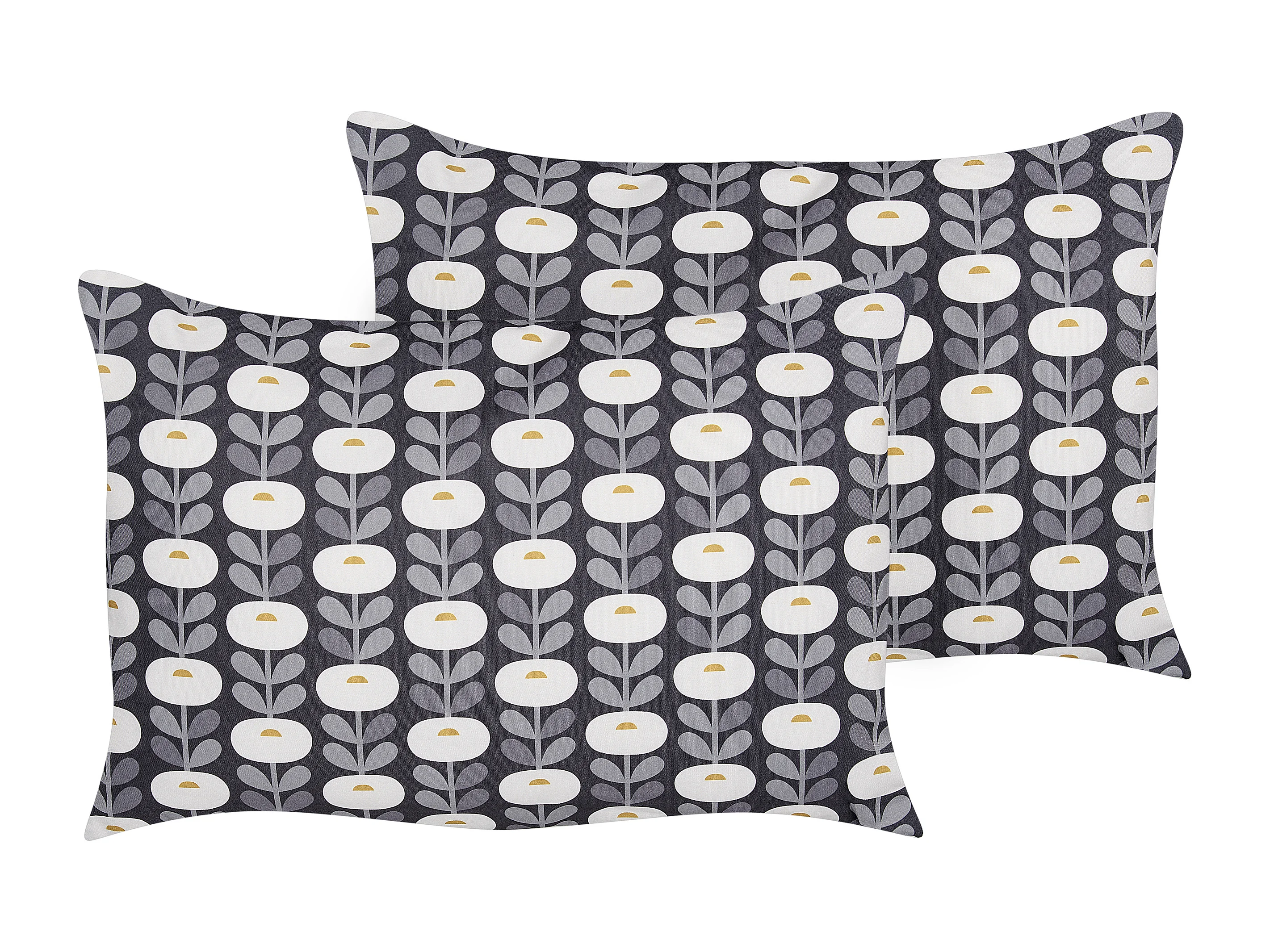 Gartenkissen grau / weiß 40 x 60 cm 2er Set Blumenmotiv Blumenmuster Valsorda