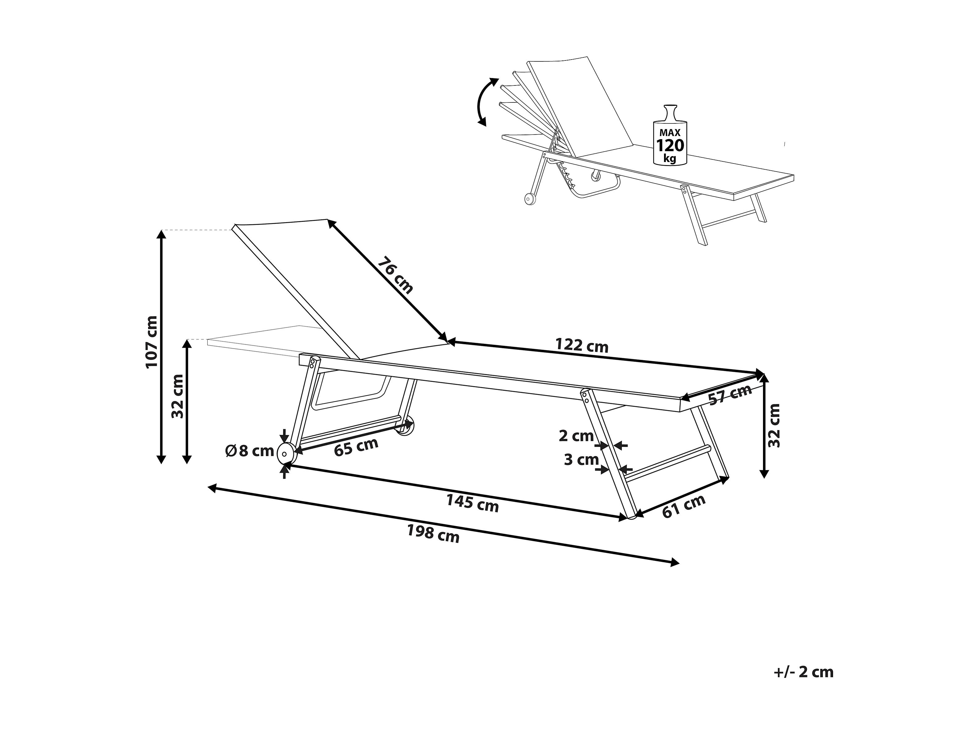 Gartenliege Aluminium schwarz Bespannung beige verstellbares Kopfteil Lariano