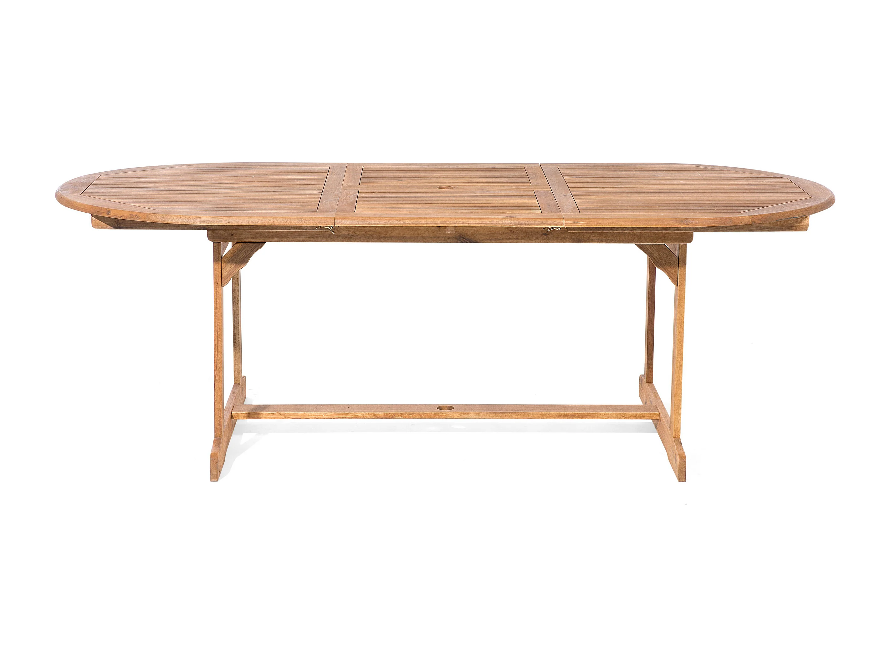 Gartenset Akazienholz hellbraun 8-Sitzer Ausziehtisch Auflagen blau Maui