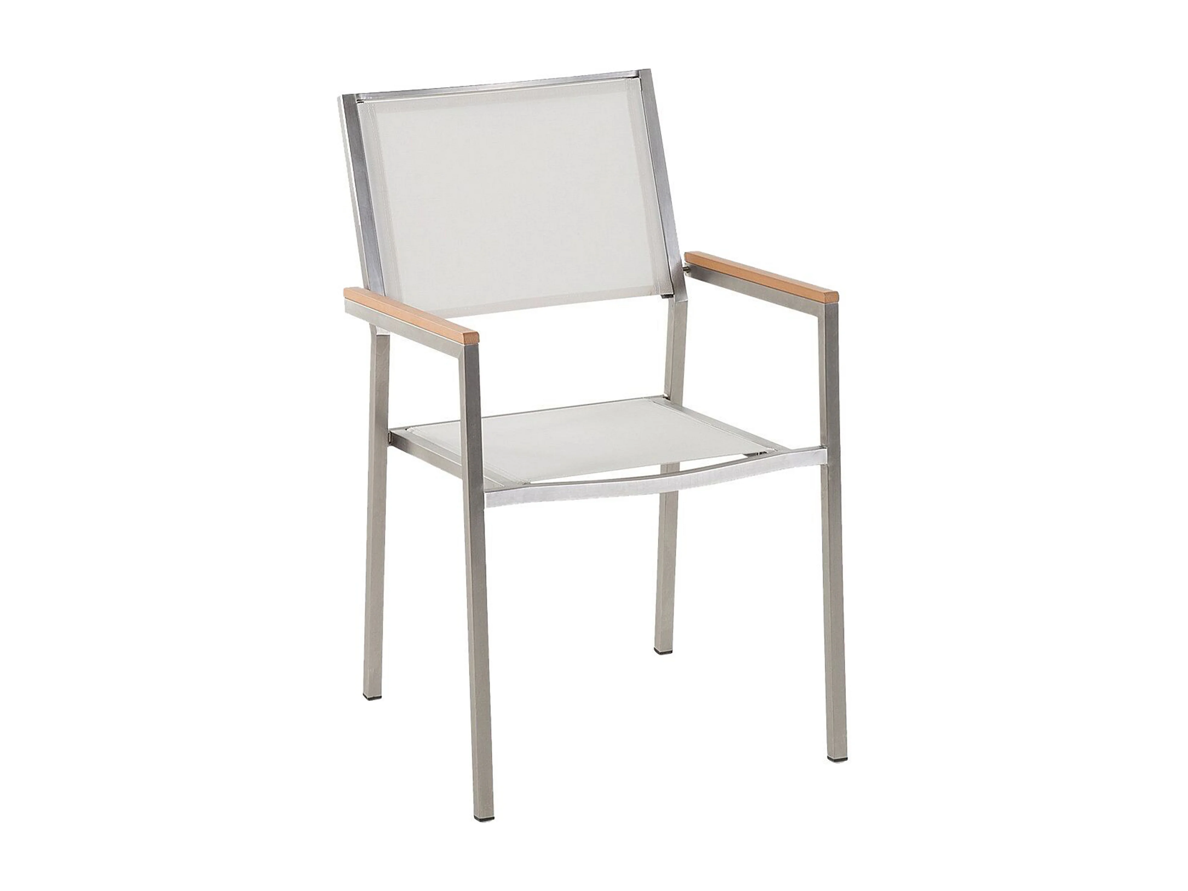 Gartenset Edelstahl Crashglasplatte 180 cm transparent 6 Stühle weiß Grosseto