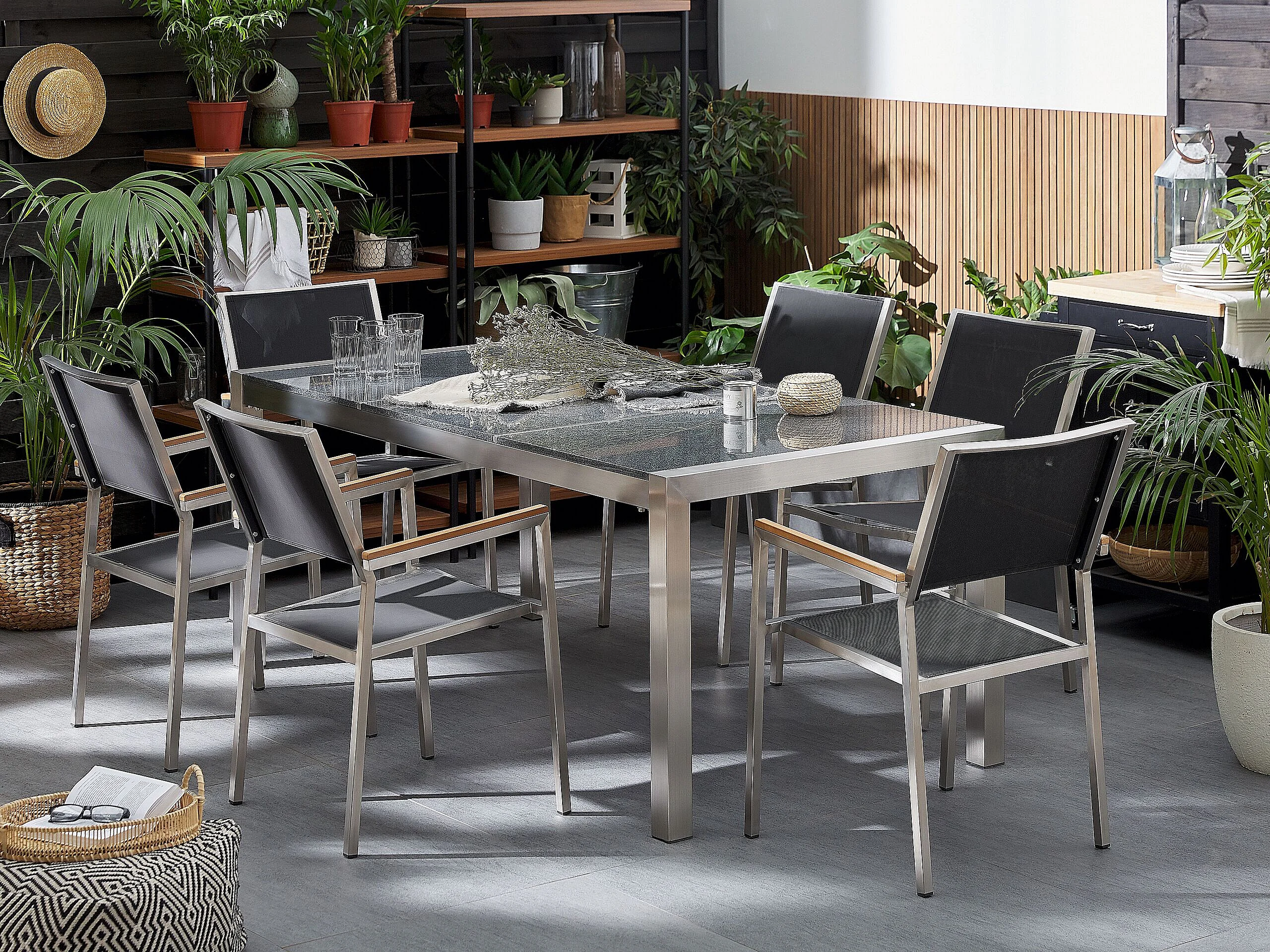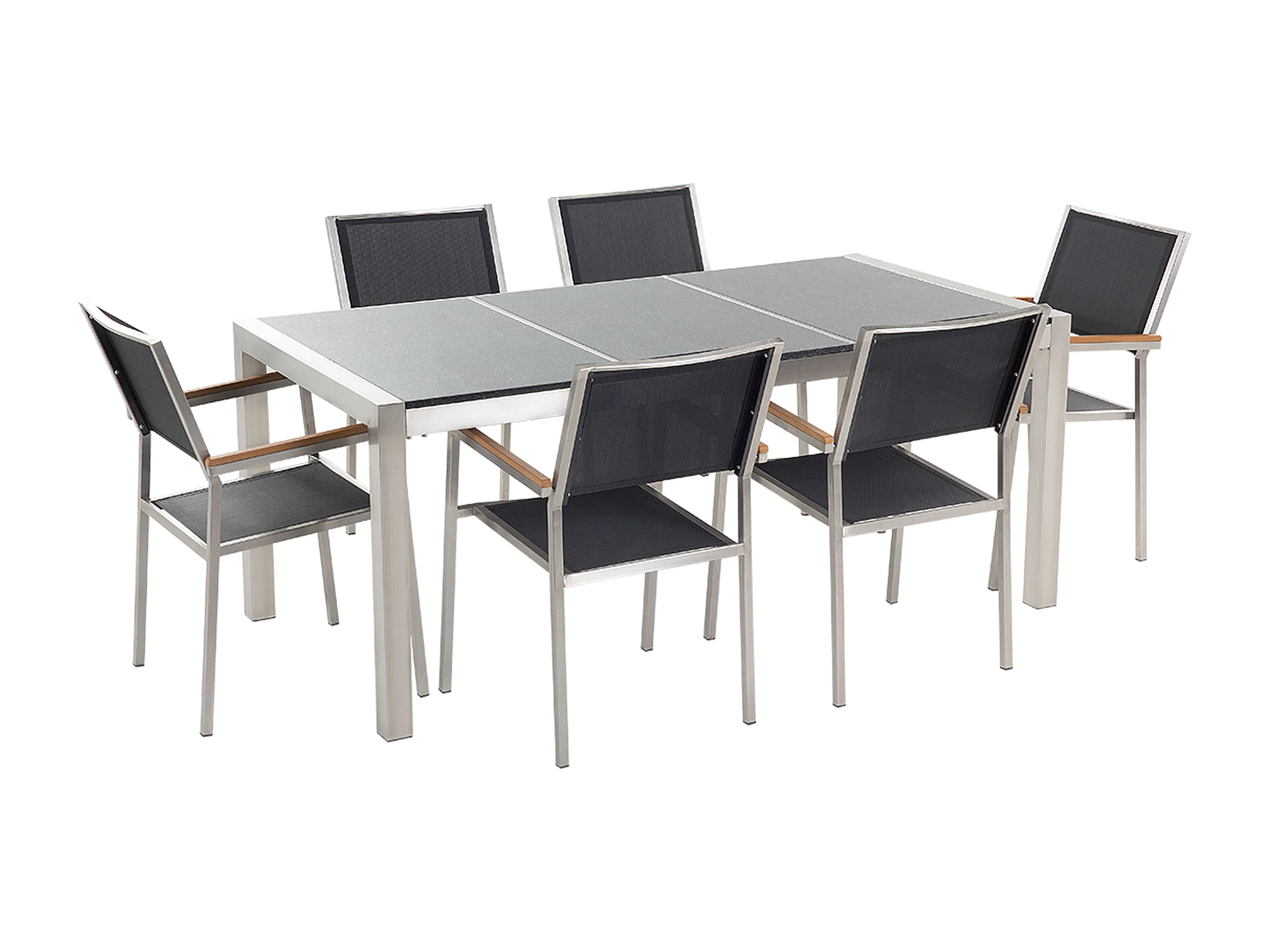Gartenmöbel Set 6-Sitzer GROSSETO Dreifachplatte Granit Polierter Schwarz / Grau
