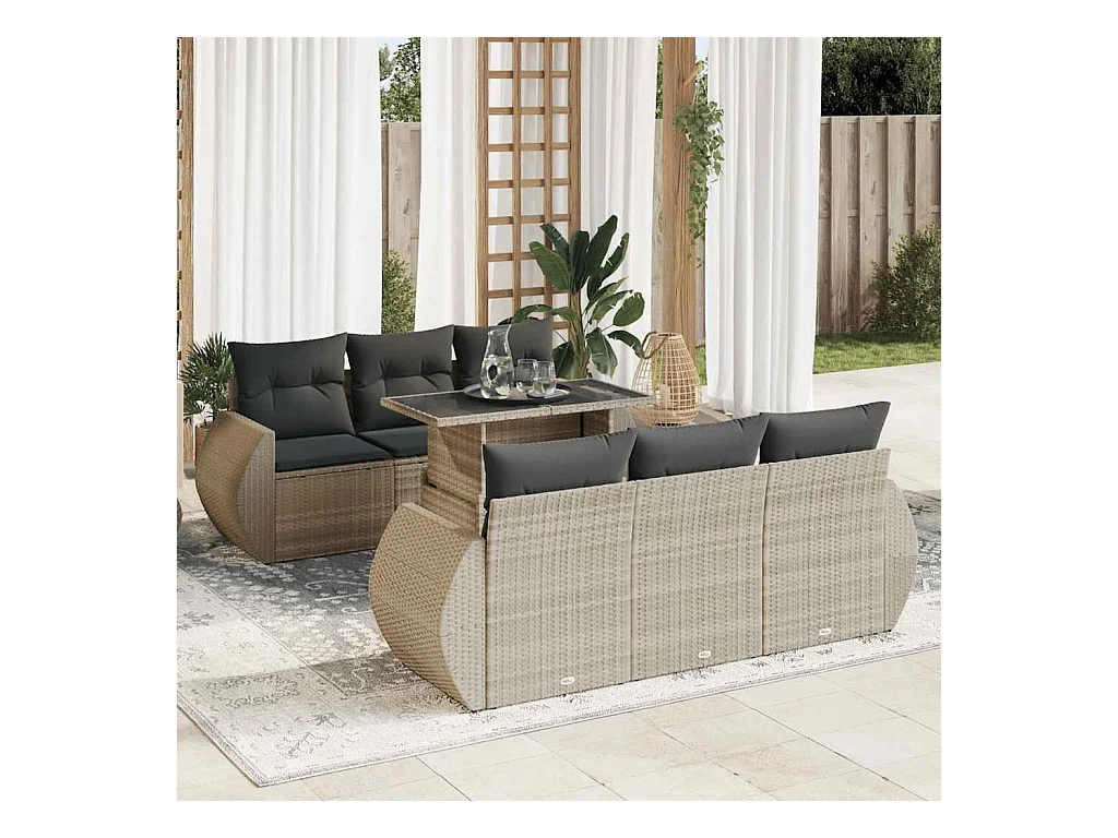 Gartenmöbel-Set mit Kissen 7-tlg. hellgraues Kunstharzgeflecht
