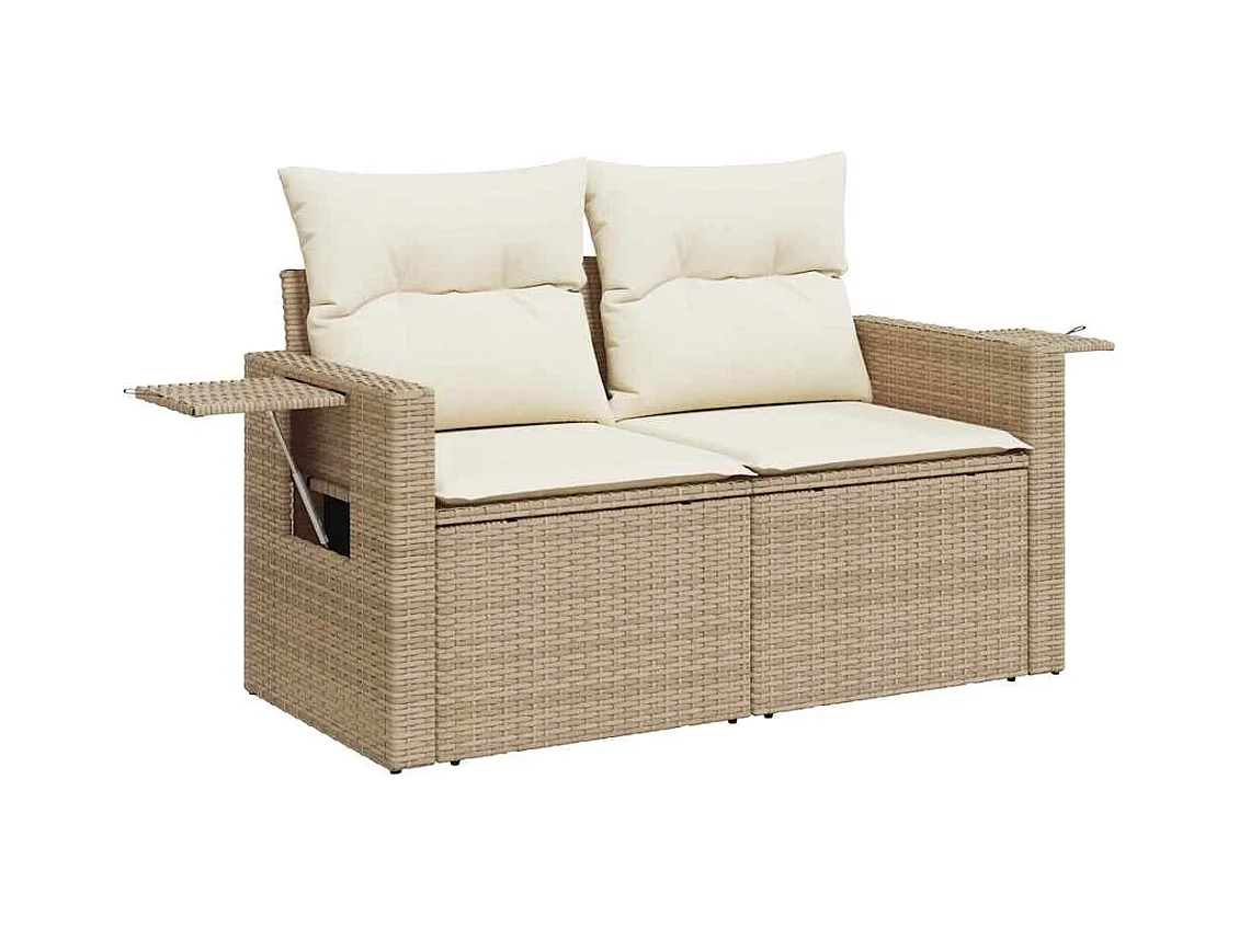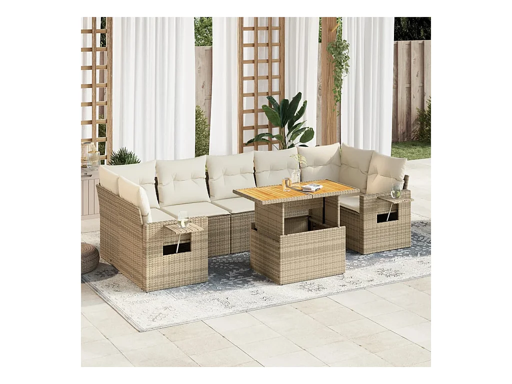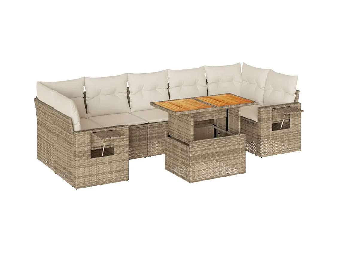 Gartenmöbel-Set mit Kissen 8-tlg. beige gewebtes Harz