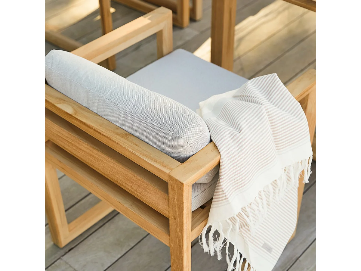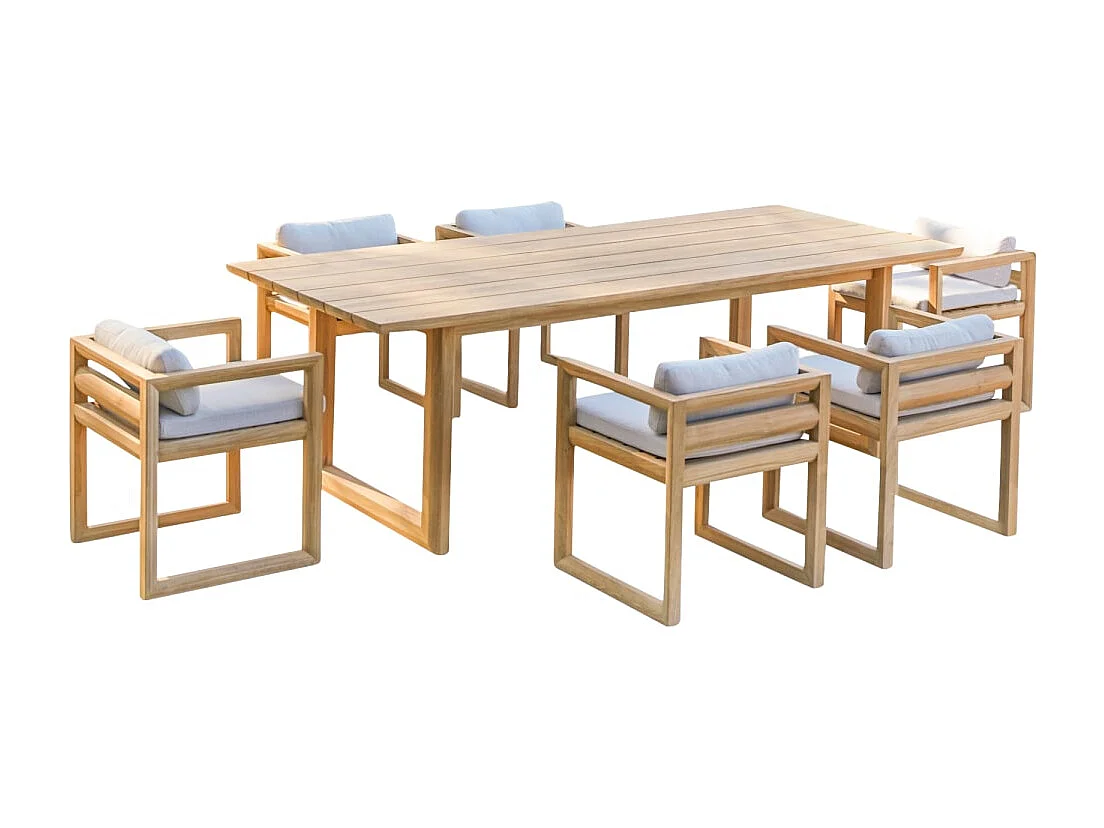 Gartenmöbel-Set Noah aus Teakholz mit Stoffkissen, 6 Stühle