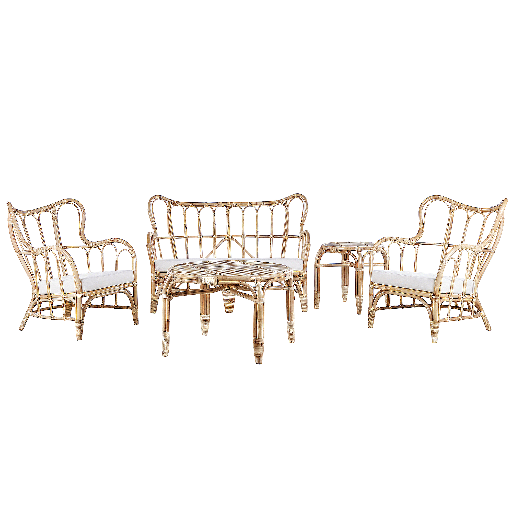 Lounge Set natürlicher Farbton 4er Sitzer Rattan Auflagen Weiß Sibari