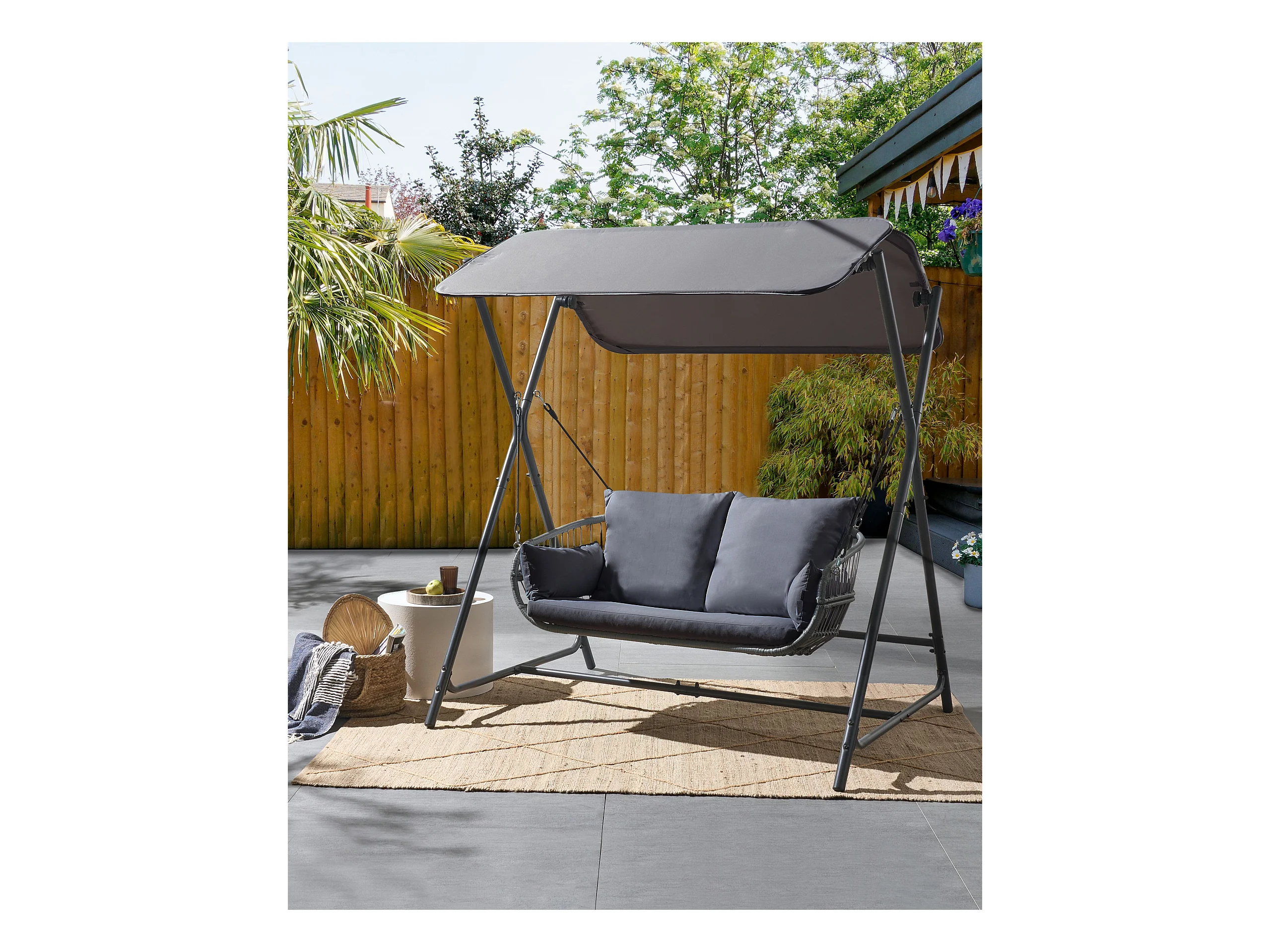 Gartenschaukel aus Stoff Stahl dunkles Grau mit verstellbarem Dach modern Fiastra