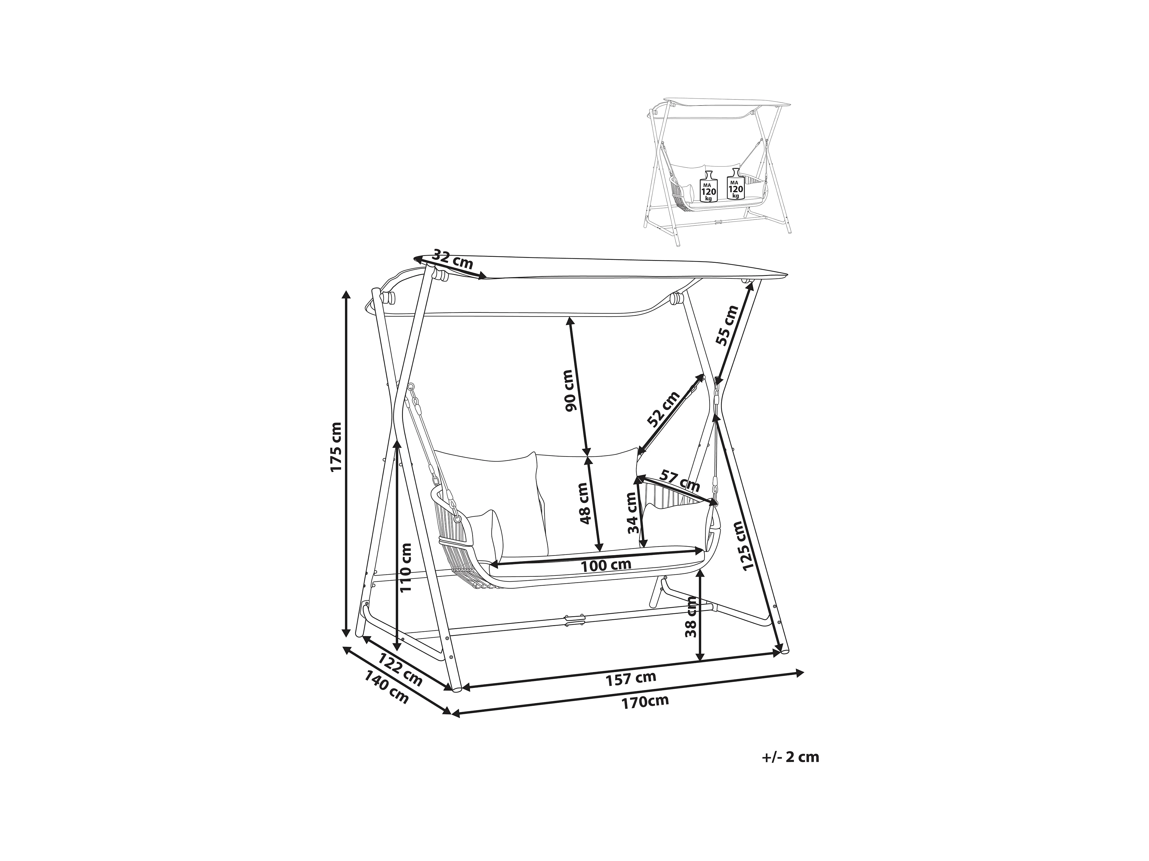 Hollywoodschaukel MARSCIANO Metall Hellgrau