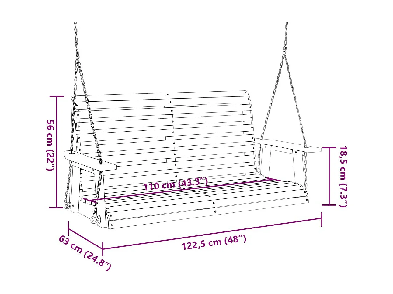 Gartenschaukelbank mit Metallketten aus massivem Tannenholz