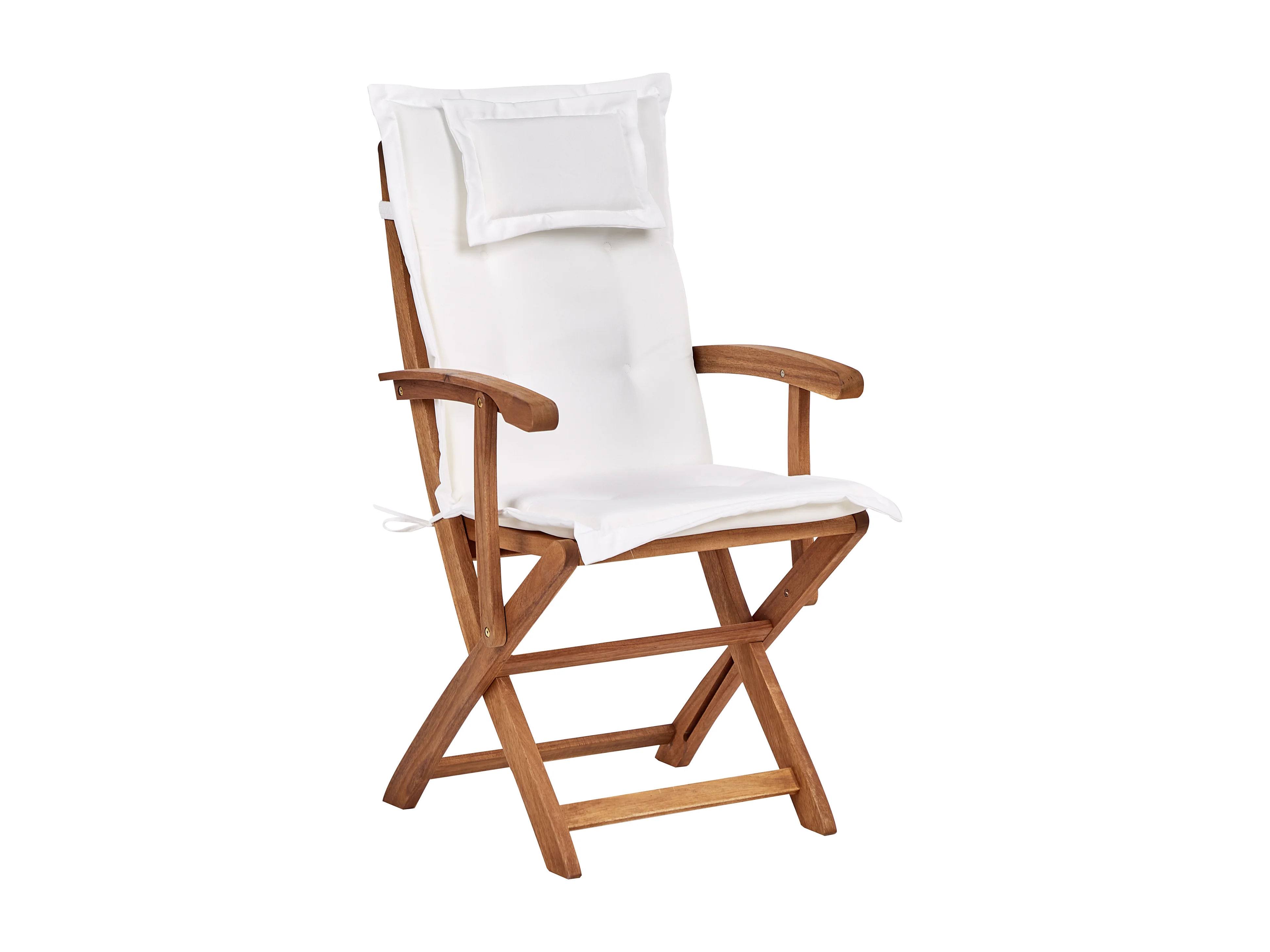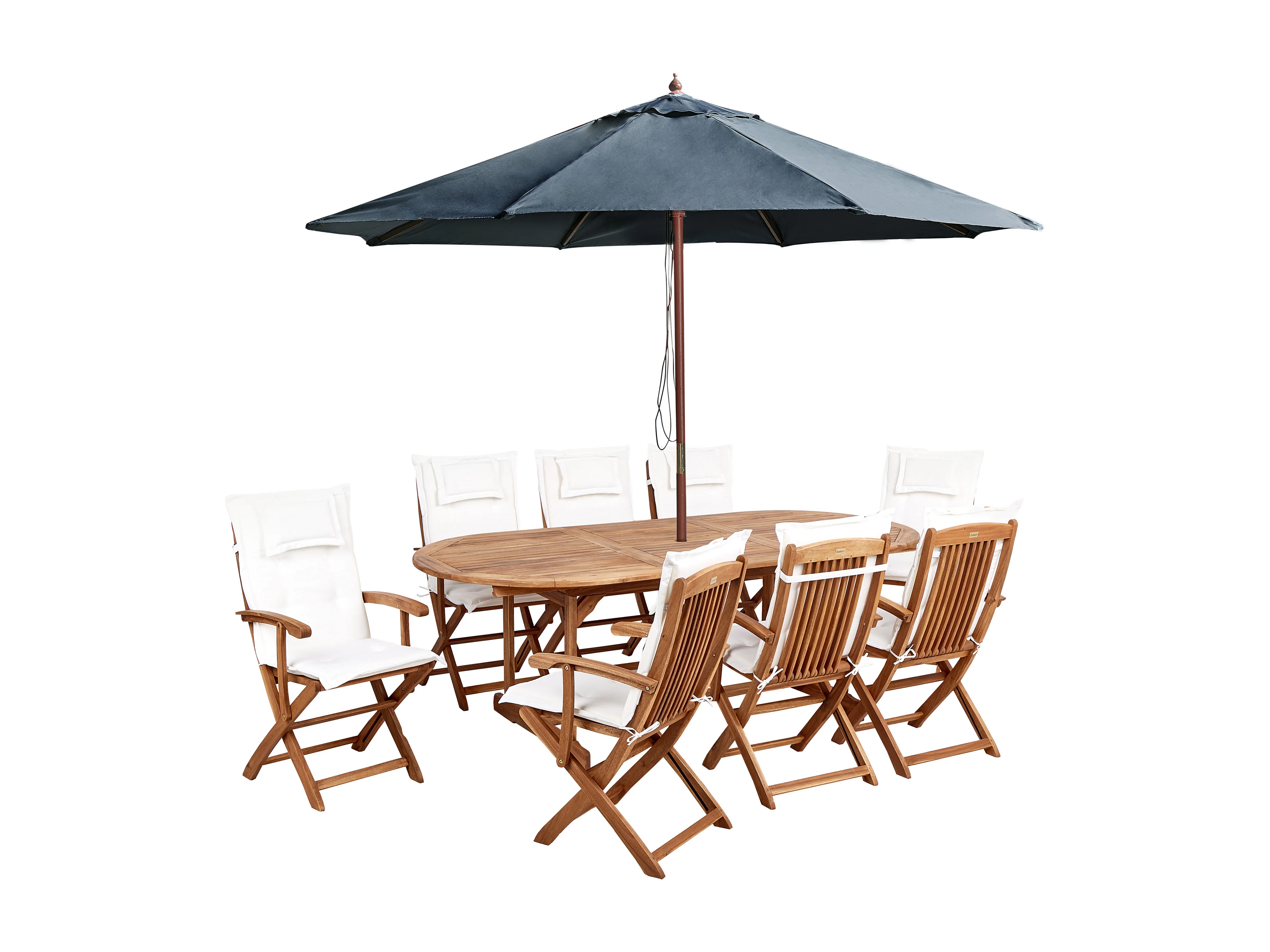 Gartenset Akazienholz heller Holzfarbton mit Auflagen weiß Sonnenschirm Maui II