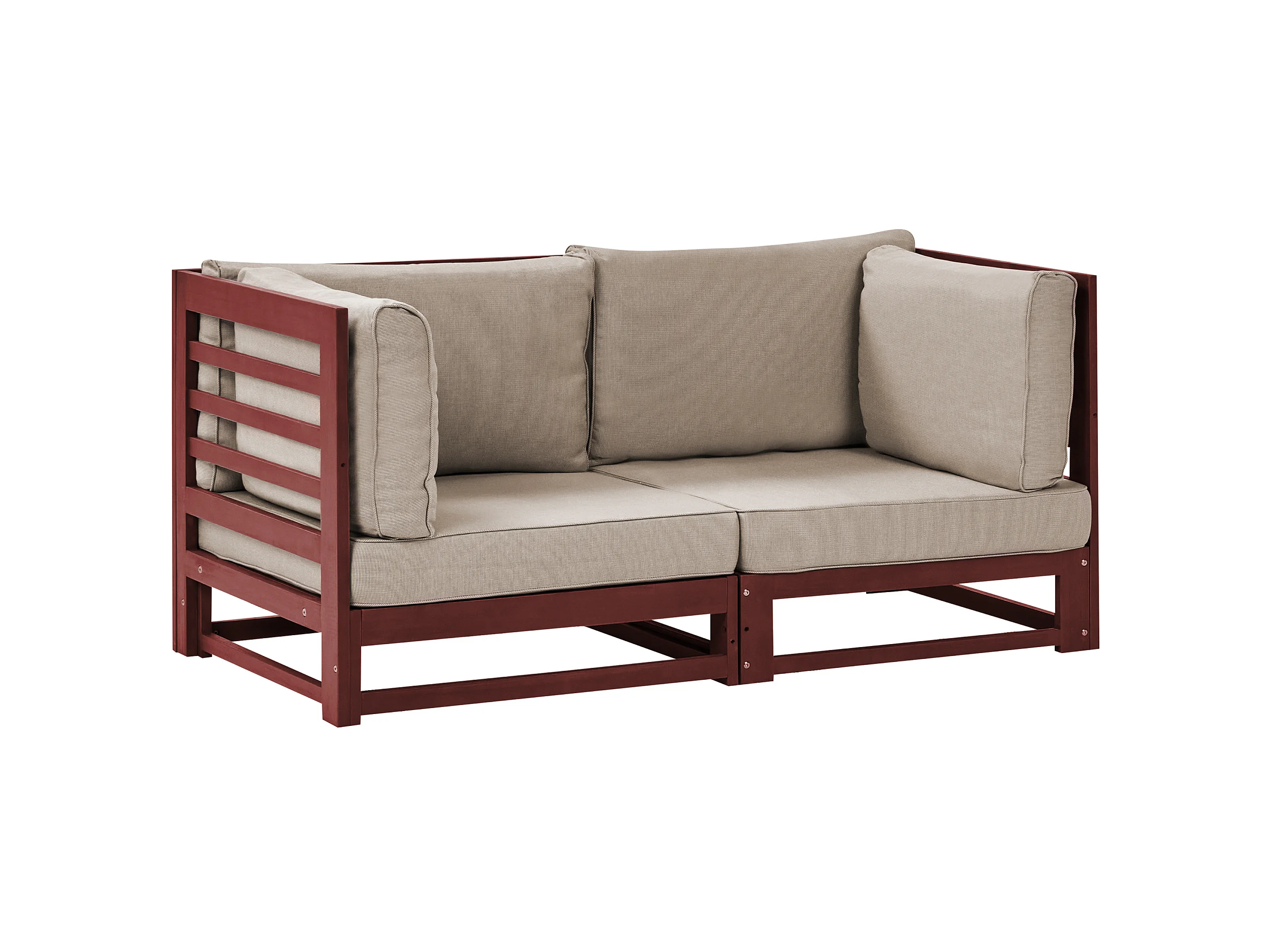 2-Sitzer-Gartensofa und hellgraue geflochtene Harzkissen