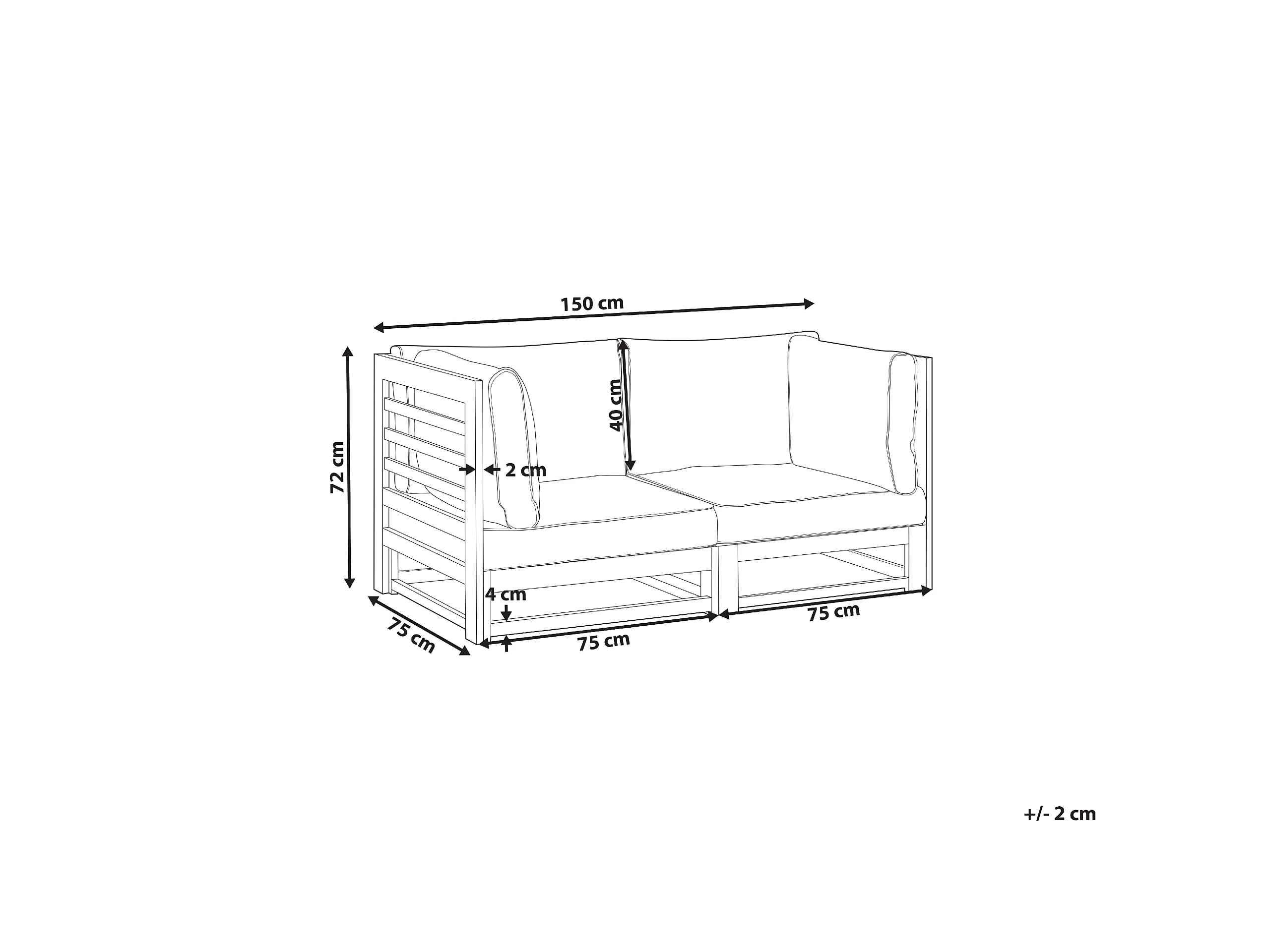 Gartensofa Akazienholz 2-Sitzer dunkler Holzfarbton mit Auflagen taupe Trani
