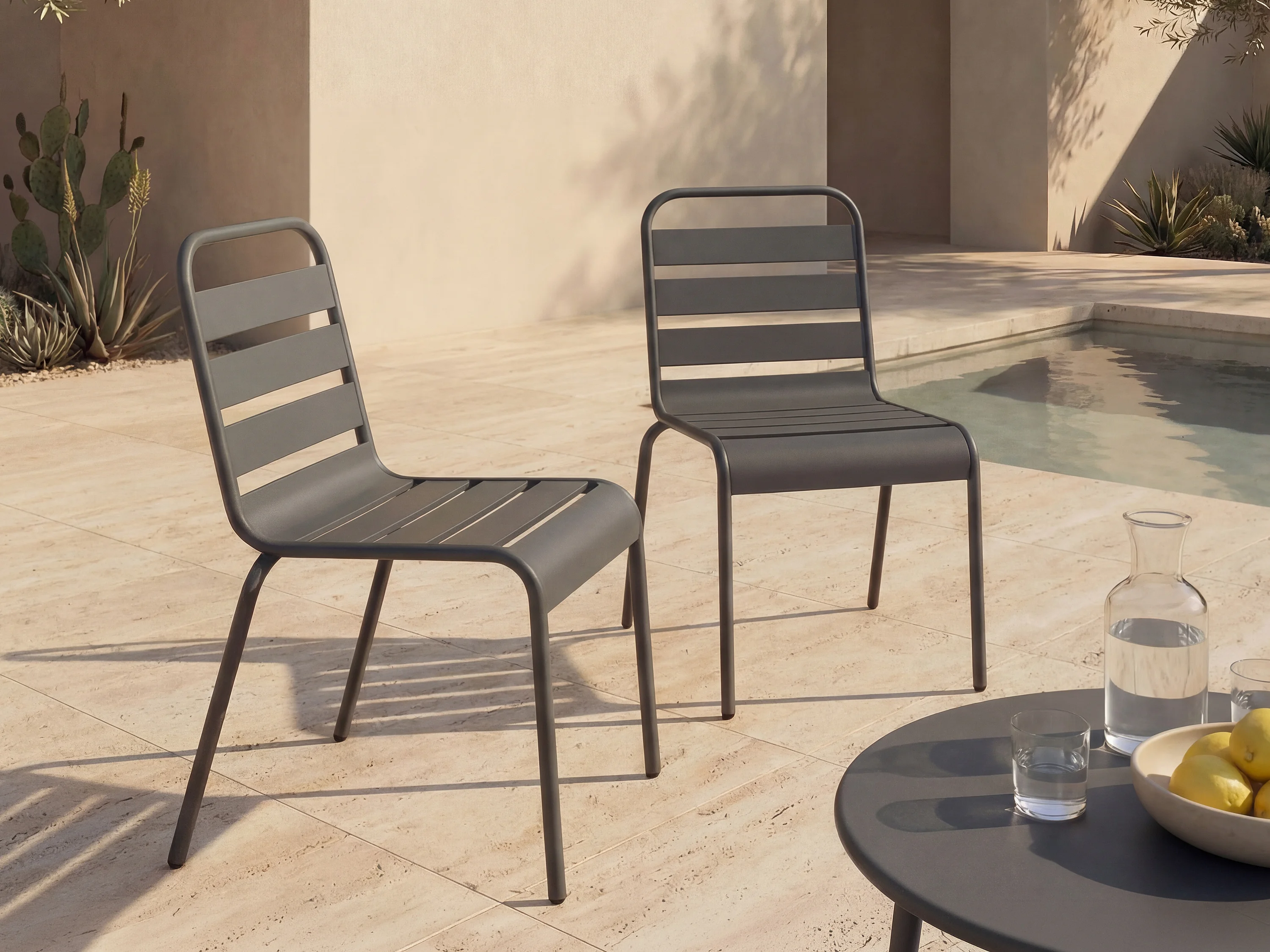 Gartenstuhl stapelbar 2er-Set - Metall - Anthrazitgrau - MIRMANDE von MYLIA