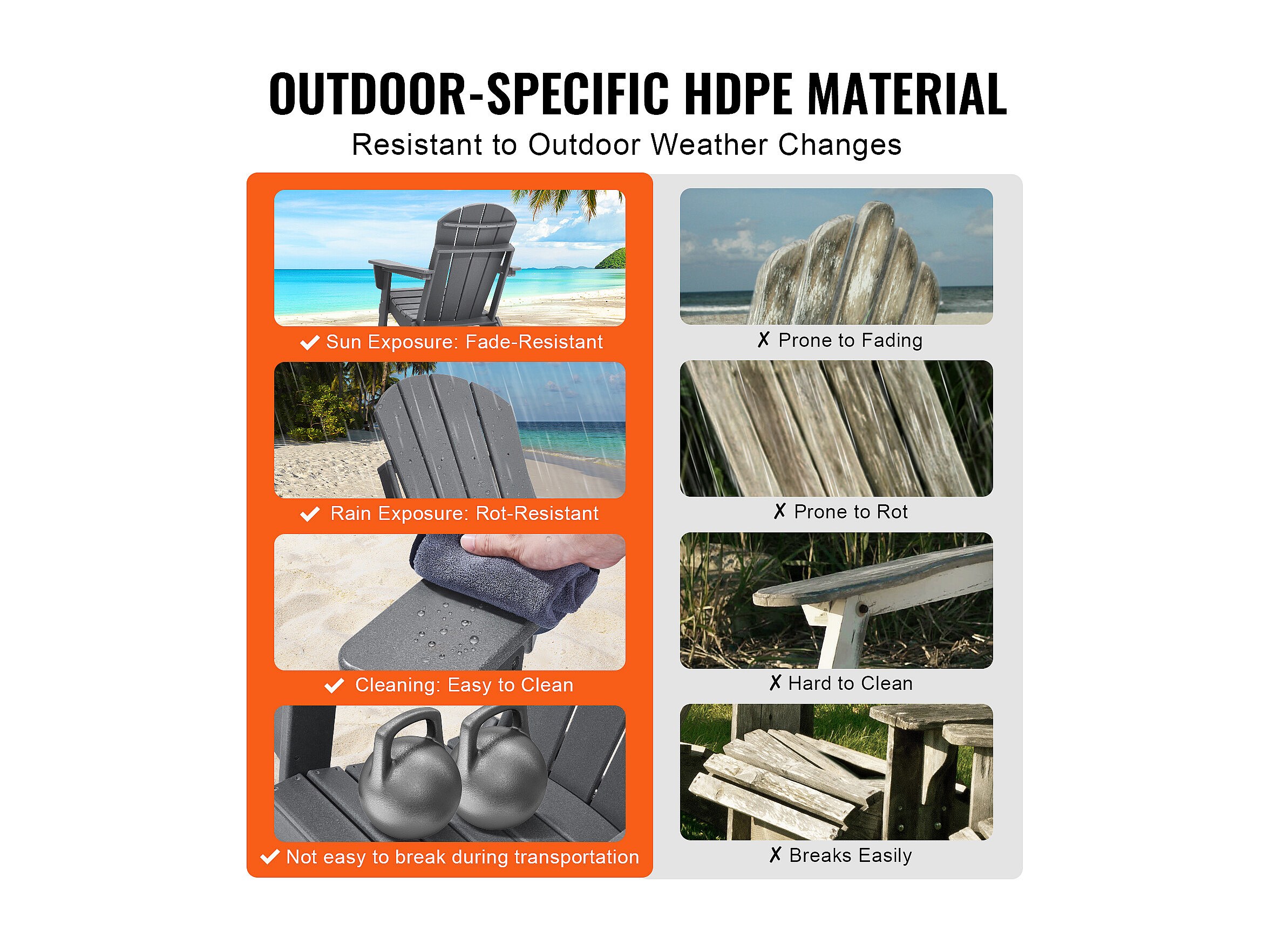 Gartenstuhl, SucceBuy Adirondack-Stuhl 2er-Set, Wetterfester, Klappbarer Kunststoff, Feuerstelle, Grau