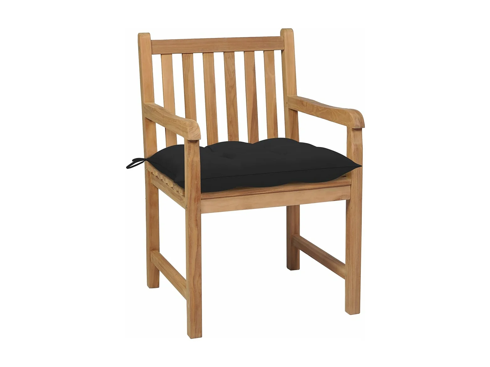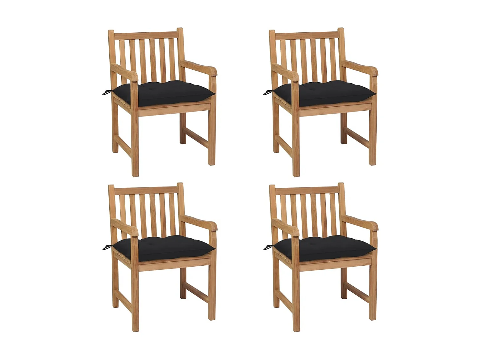 Gartenstühle 4 Stück mit schwarzen Kissen. Massives Teakholz