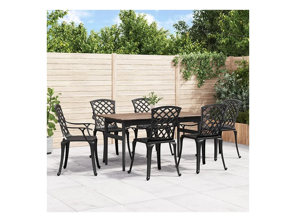 Gartenstühle 6er-Set aus schwarzem Aluminiumguss