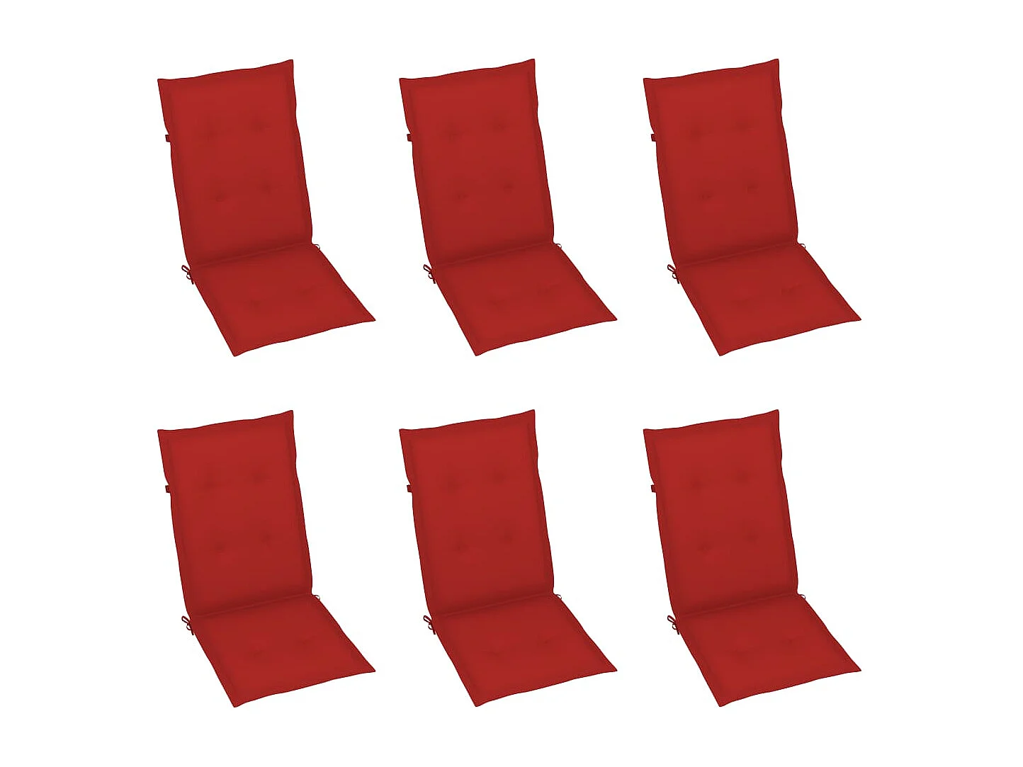 Gartenstühle 6er-Set mit roten Kissen. Massives Teakholz
