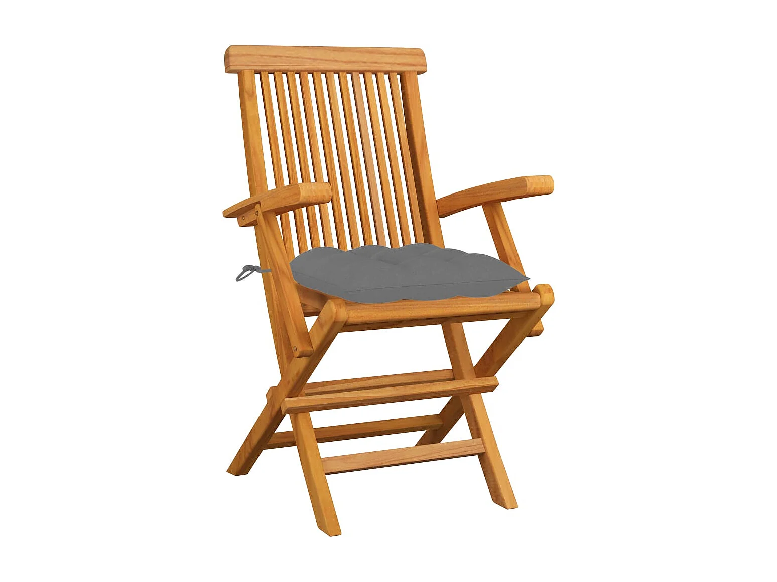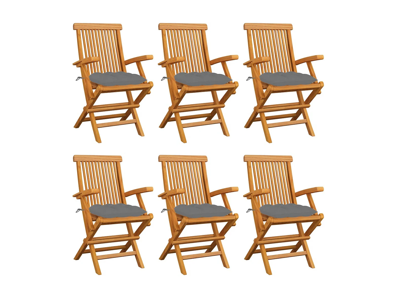 Gartenstühle mit grauen Kissen 6er Set Massivholz Teak